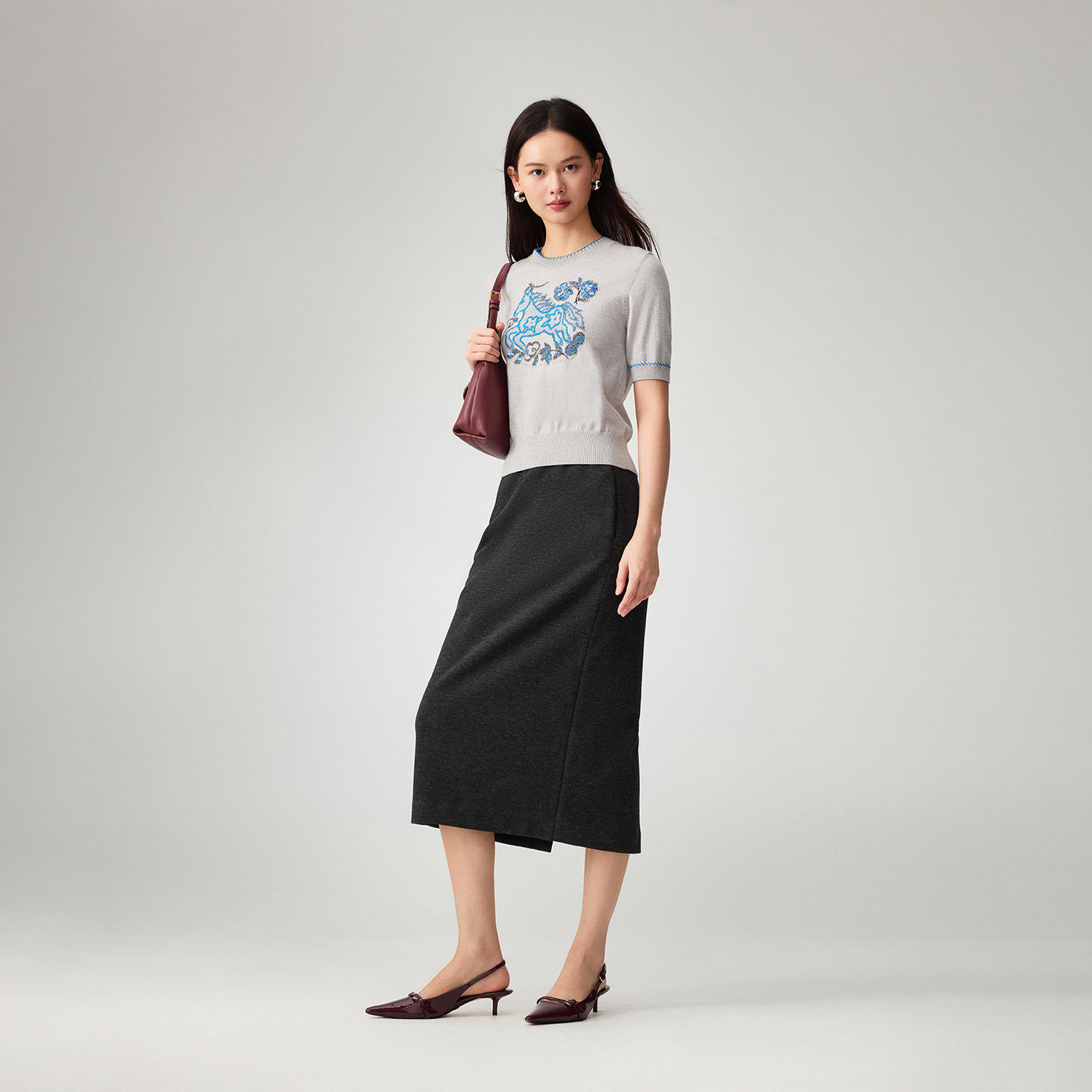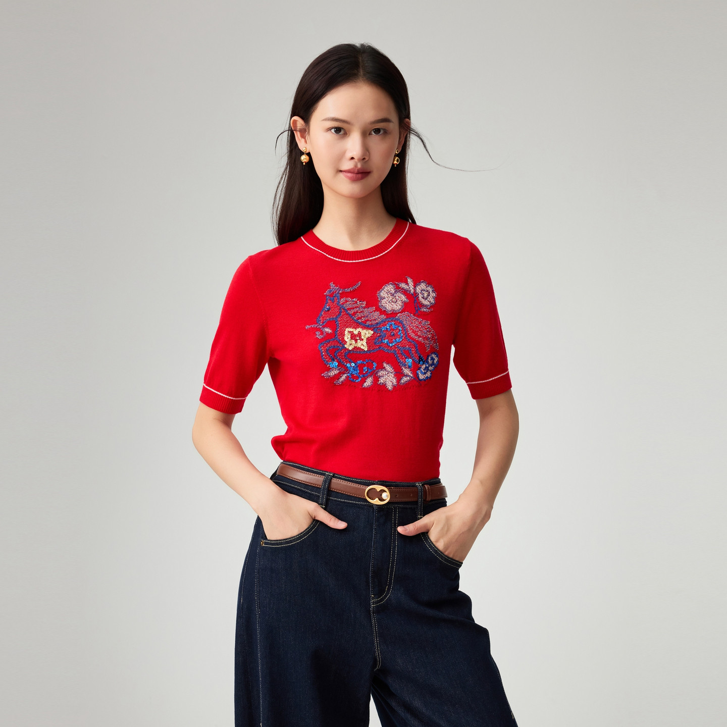 [新年系列]EP雅莹2026春夏新款女装 羊绒棉套头中袖针织衫9526A