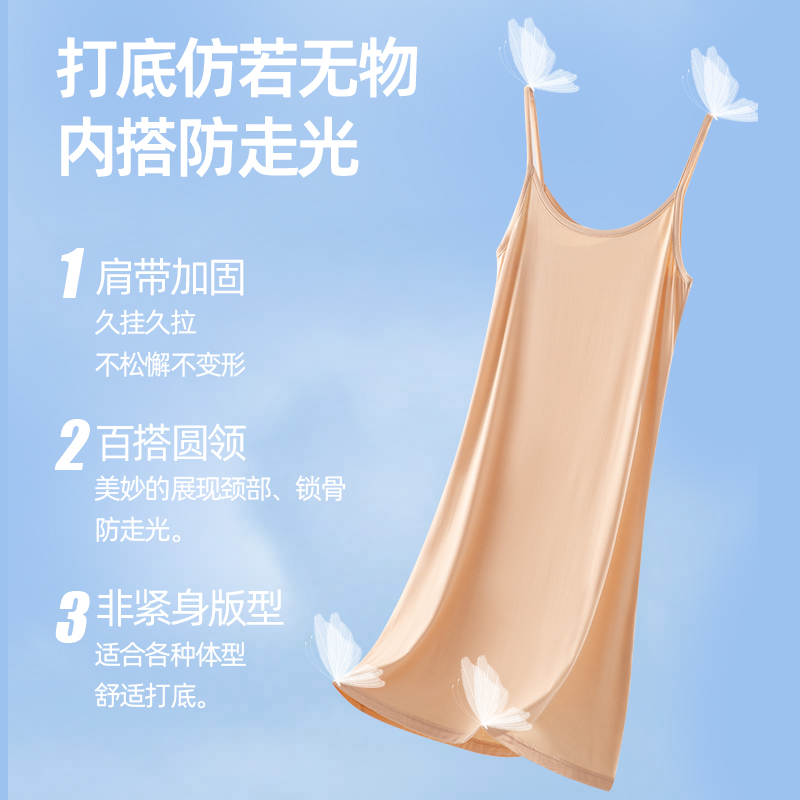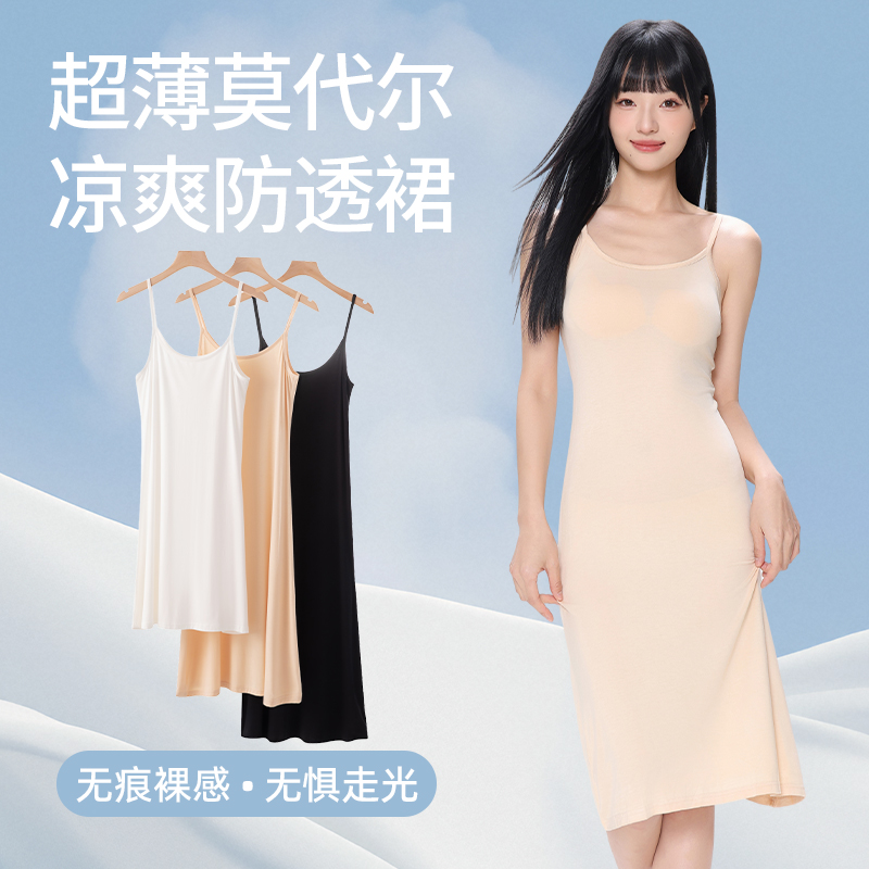 旗袍专用打底吊带内衬裙肤色无痕莫代尔中长款汉服内搭叠穿连衣裙