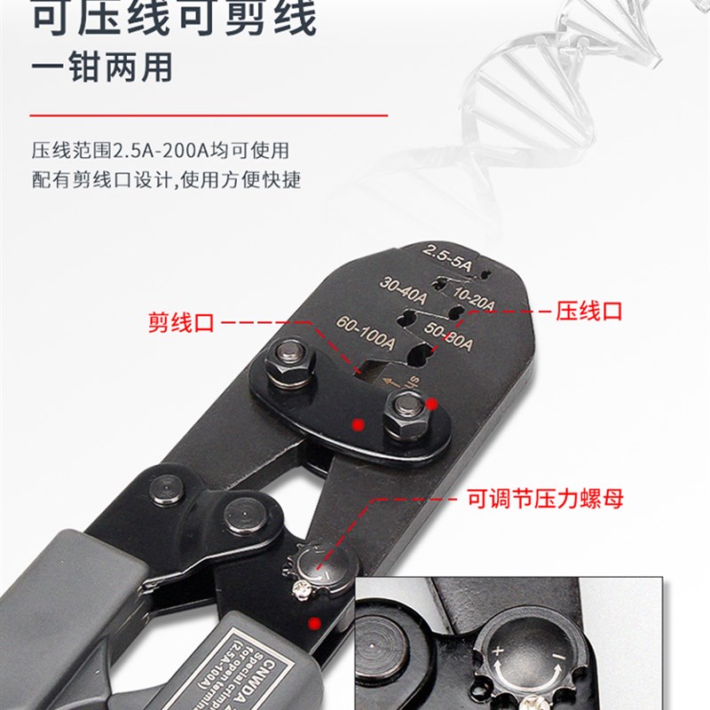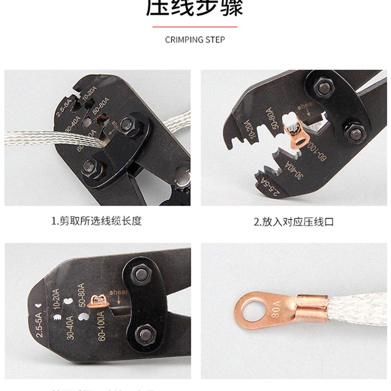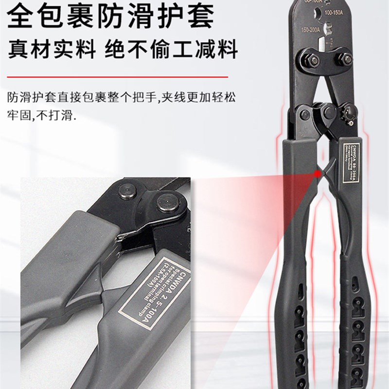开口鼻压钳铜线鼻子U型OT端子手动压接钳5-200A接头冷压端子钳