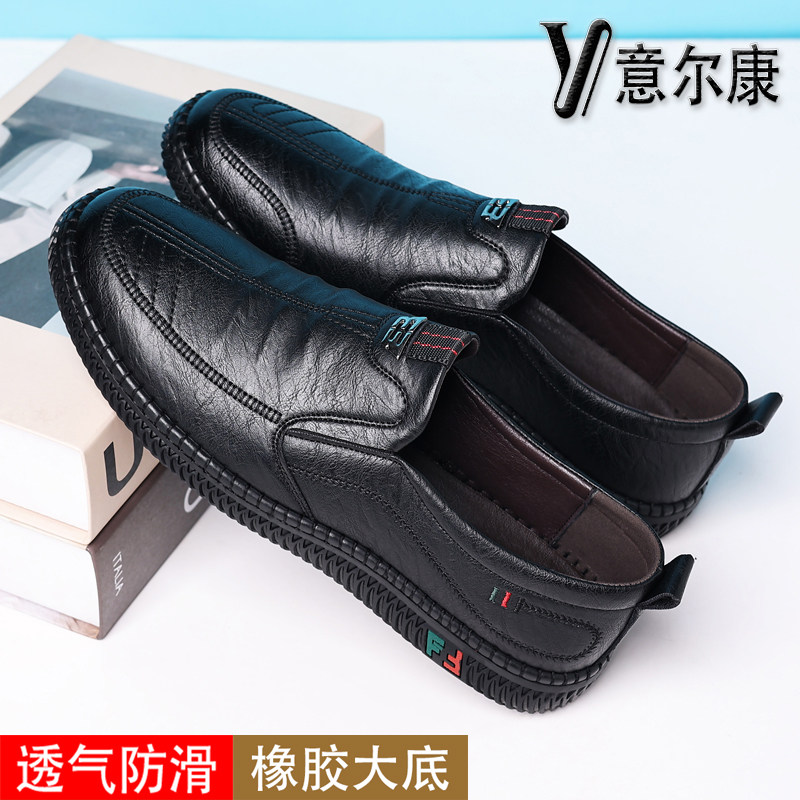 意尔康皮鞋男2025秋季新款透气真皮商务休闲鞋防滑软底套脚驾车鞋
