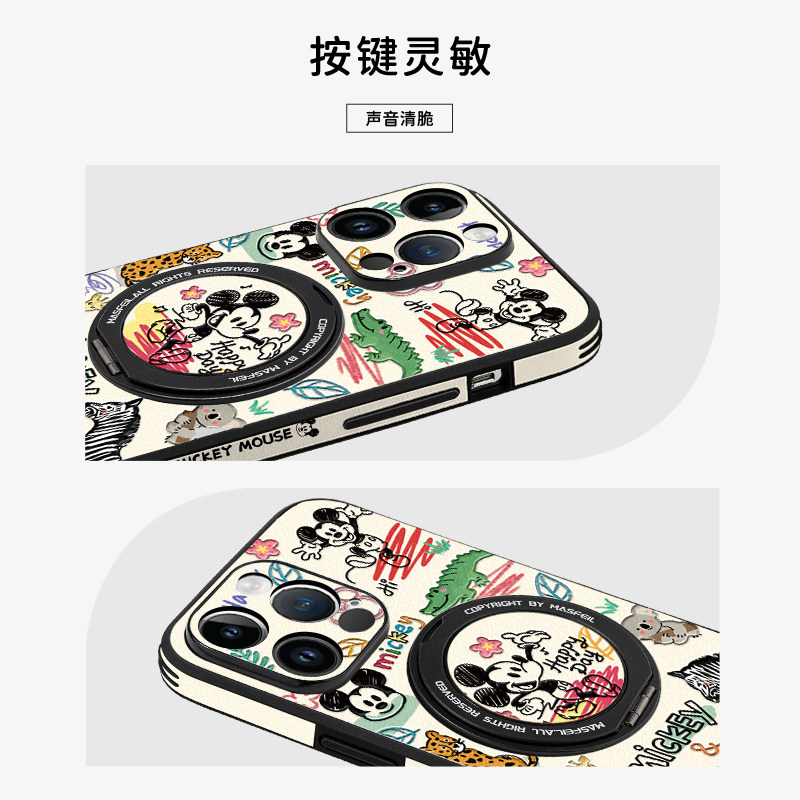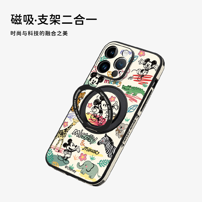 ANGYING ×米奇动物园适用iPhone17Promax手机壳新款ip14磁吸带支架15苹果16Pro迪士尼Ho5全包高级感支点13pm