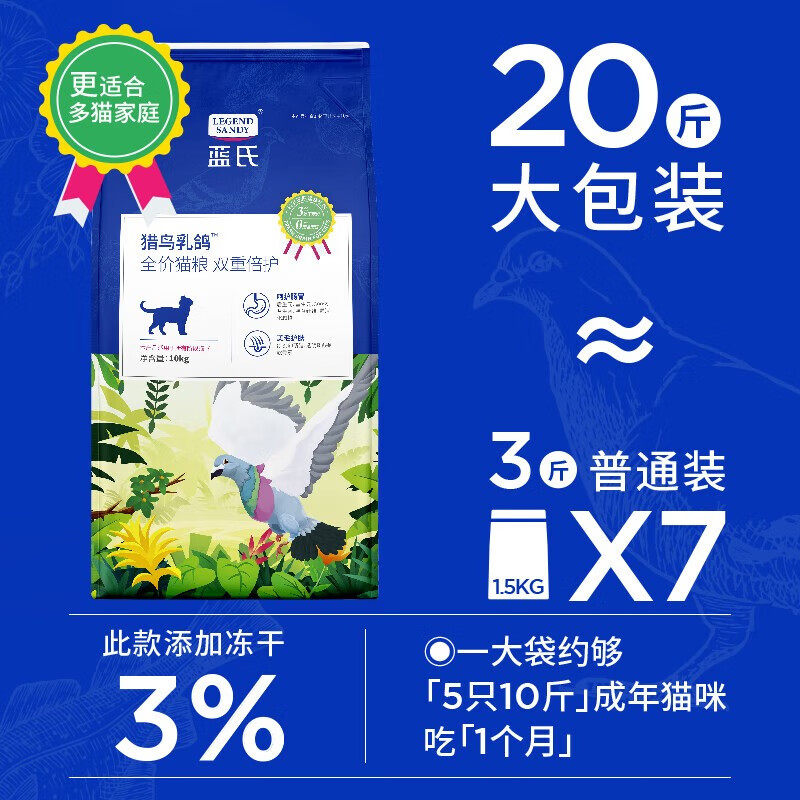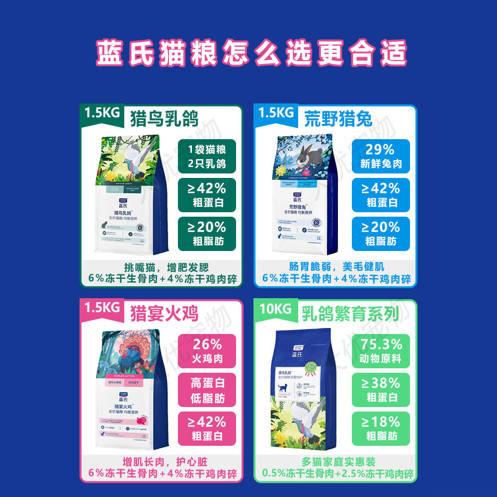 蓝氏猫粮猎鸟乳鸽猫粮1.5kg荒野猎兔成幼猫冻干粮10kg官方旗舰店
