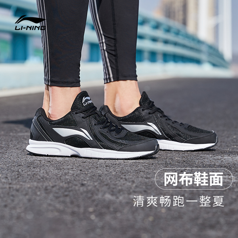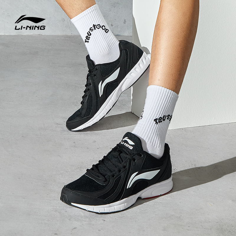 李宁跑步鞋 R037 男款网面透气减震回弹黑色软底休闲运动跑步鞋