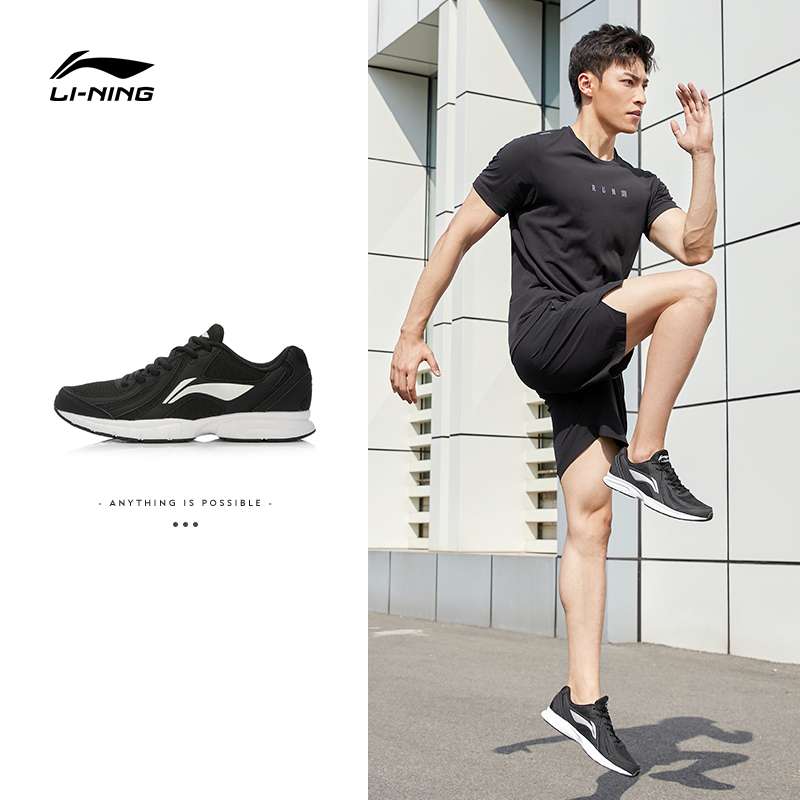 李宁男子透气休闲跑步鞋软底透气