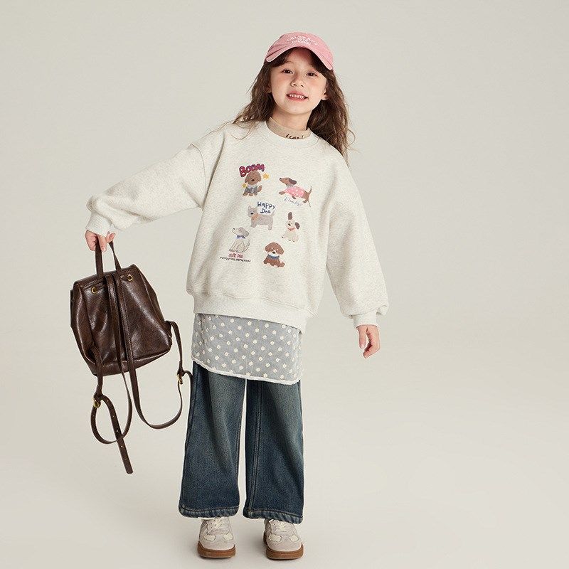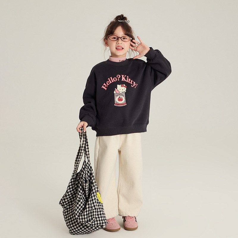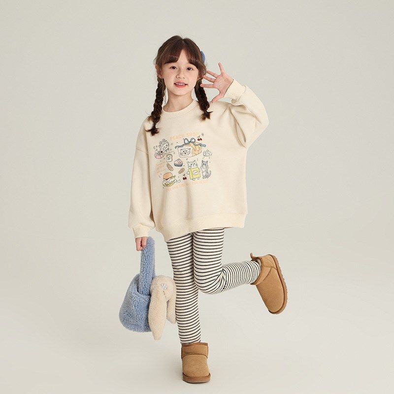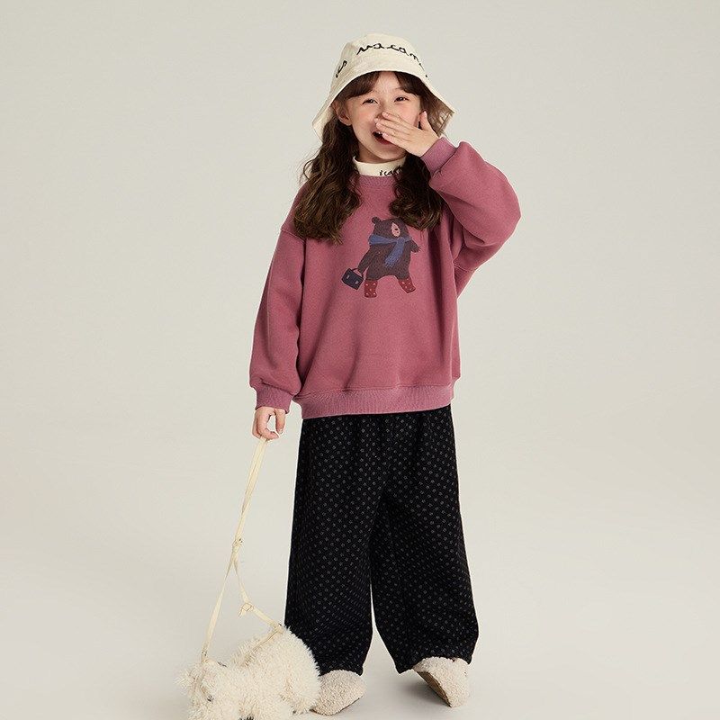 儿童韩版宽松套头衫女童冬季加厚保暖一体绒卡通卫衣宝宝加绒上衣