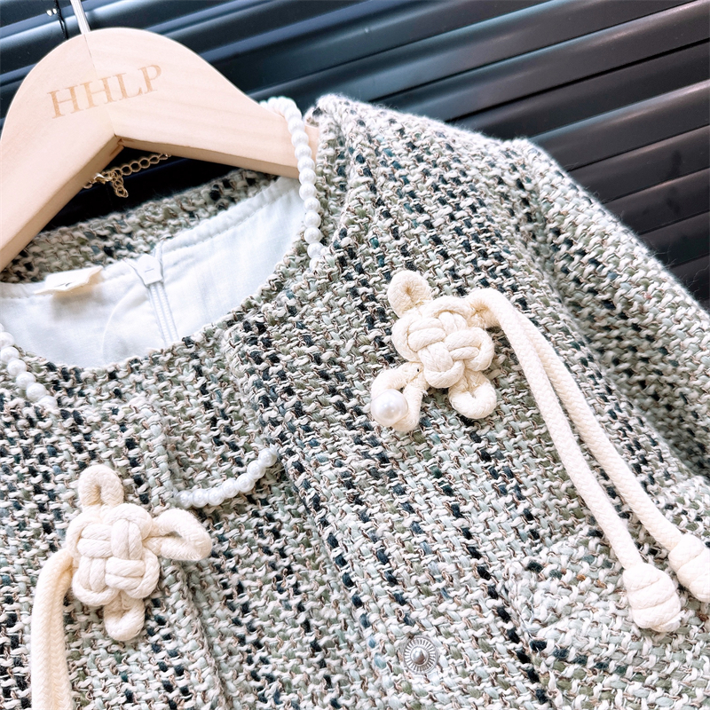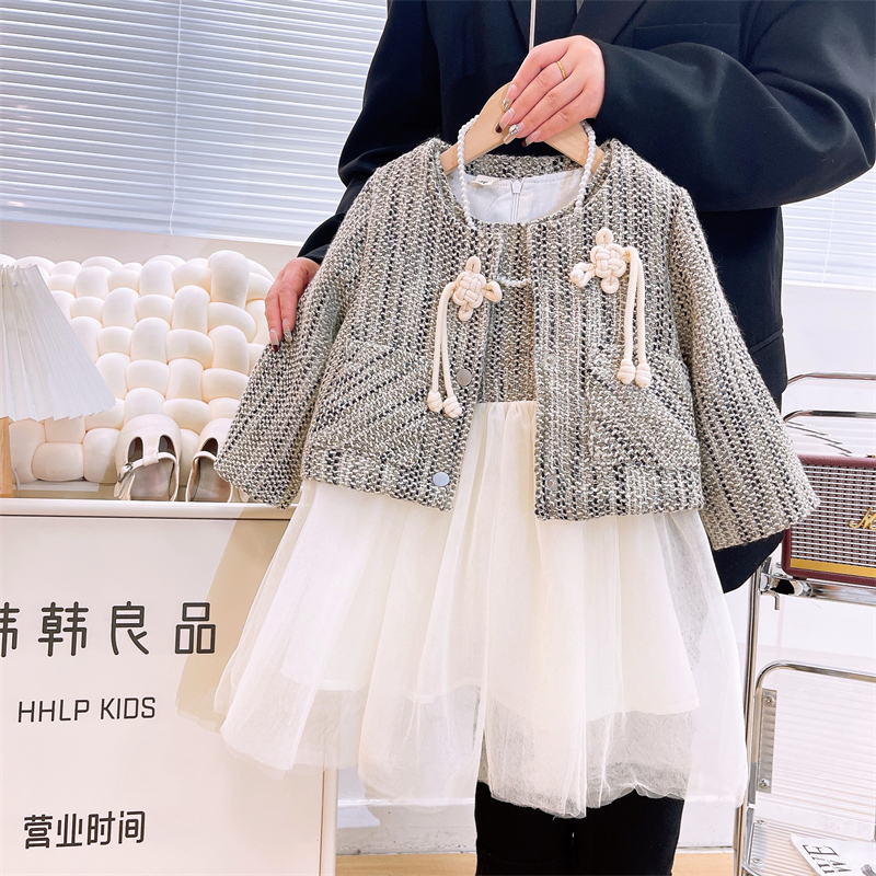 韩韩良品女童小香风套装2024春季新款短外套拼接网纱背心裙两件套