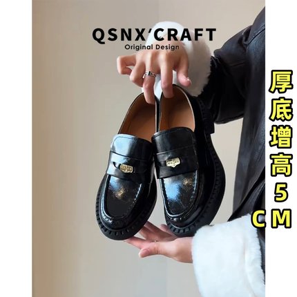 真皮版~金币厚底乐福鞋女2025新款黑色圆头通勤单鞋英伦风小皮鞋