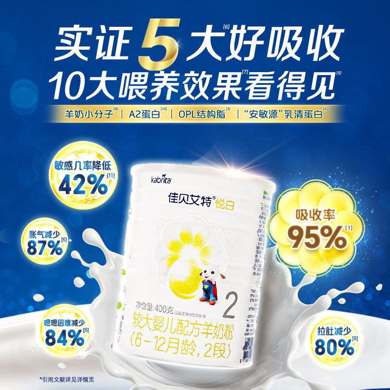 佳贝艾特新国标羊奶粉2段悦白400g*4 OPO+天然A2蛋白