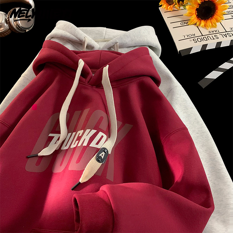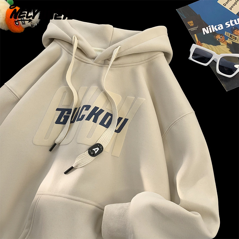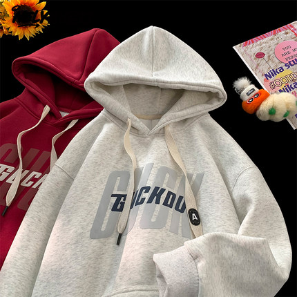 秋冬季宽松潮流连帽加绒加厚卫衣男春秋青少年高中学生帽衫外套潮