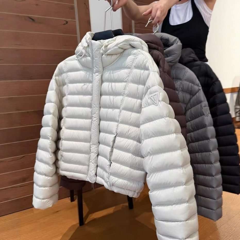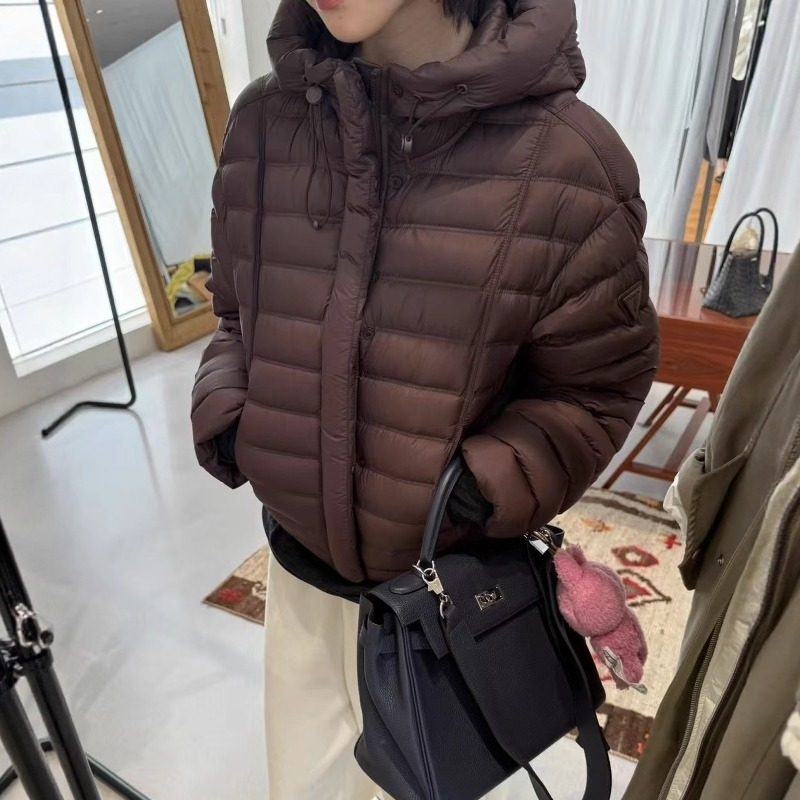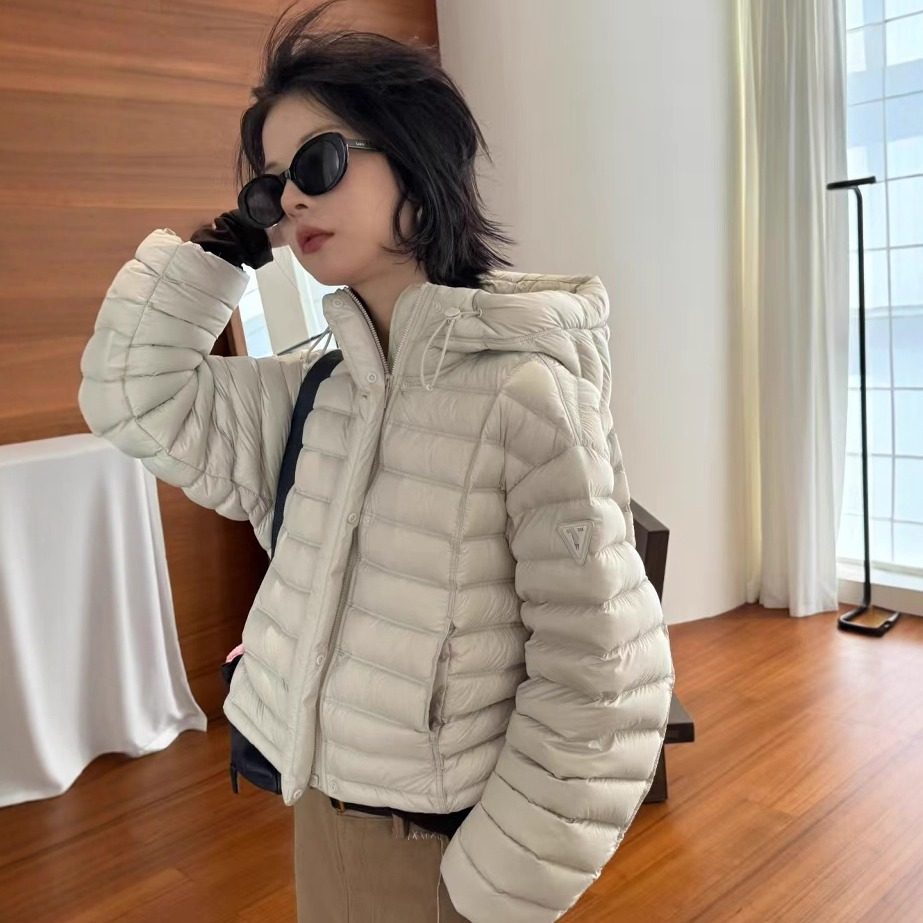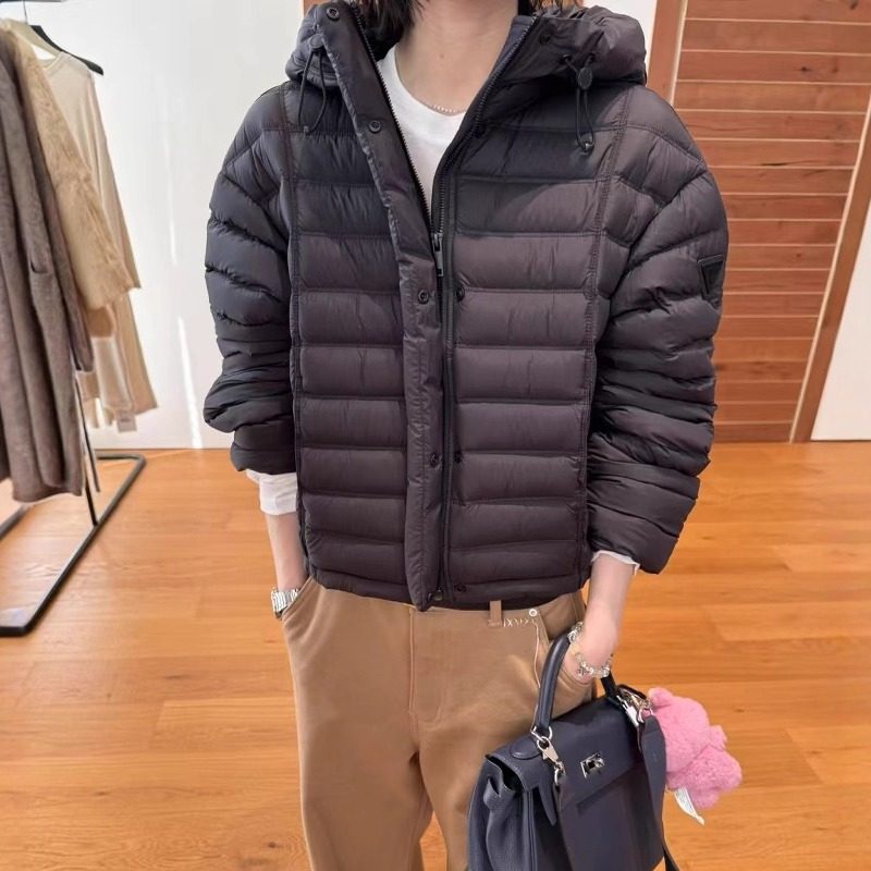 欧洲站2025秋冬新款袖三角贴标小个子宽松连帽排骨鹅绒羽绒服外套