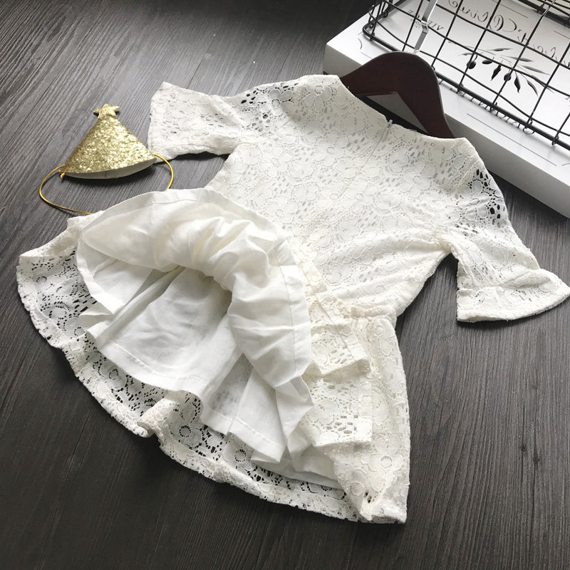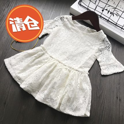 春夏季韩版女童宝宝儿童蕾丝镂空中袖全棉连衣裙洋气公主裙1-3岁