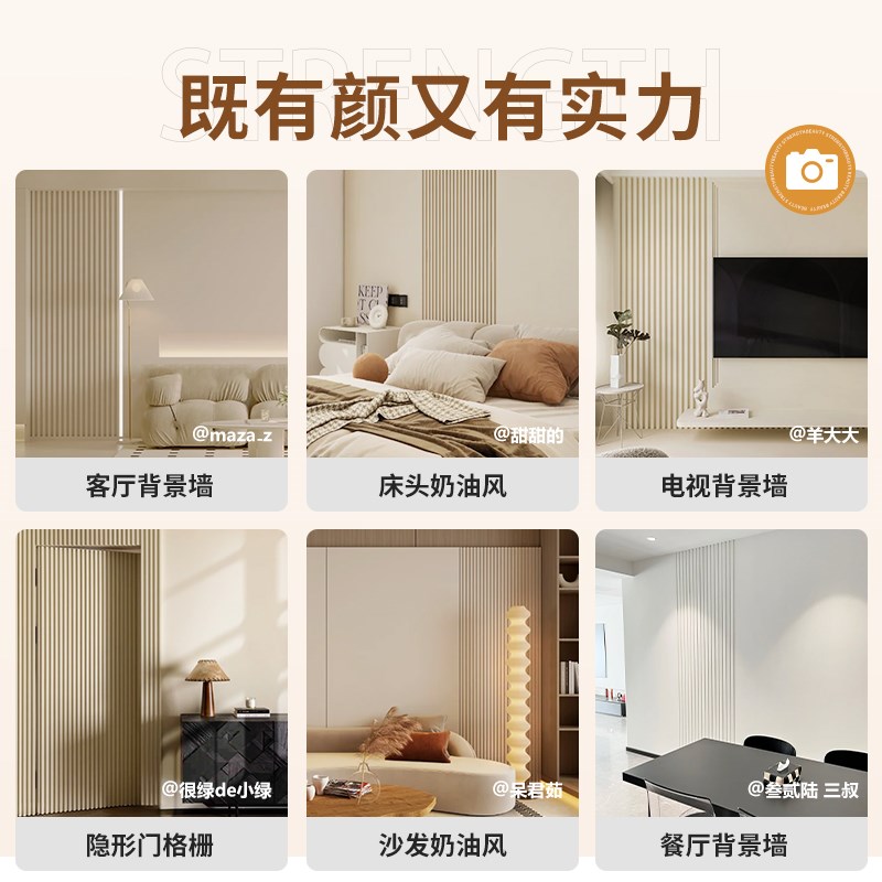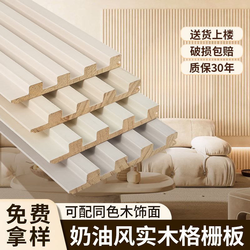 奶油风实木格栅板背景装饰墙板隔墙格珊木饰面板护墙板木格栅定制