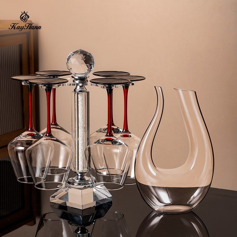 勃艮第红酒杯轻奢高级感家用高脚杯醒酒器套装2025新款架子倒挂
