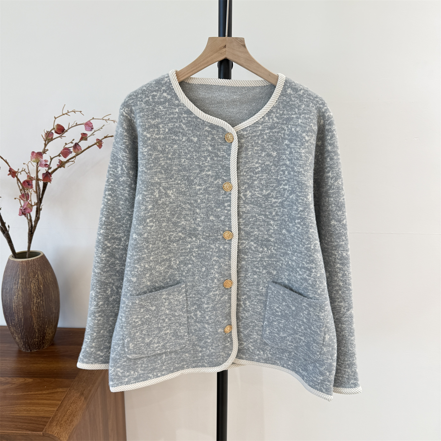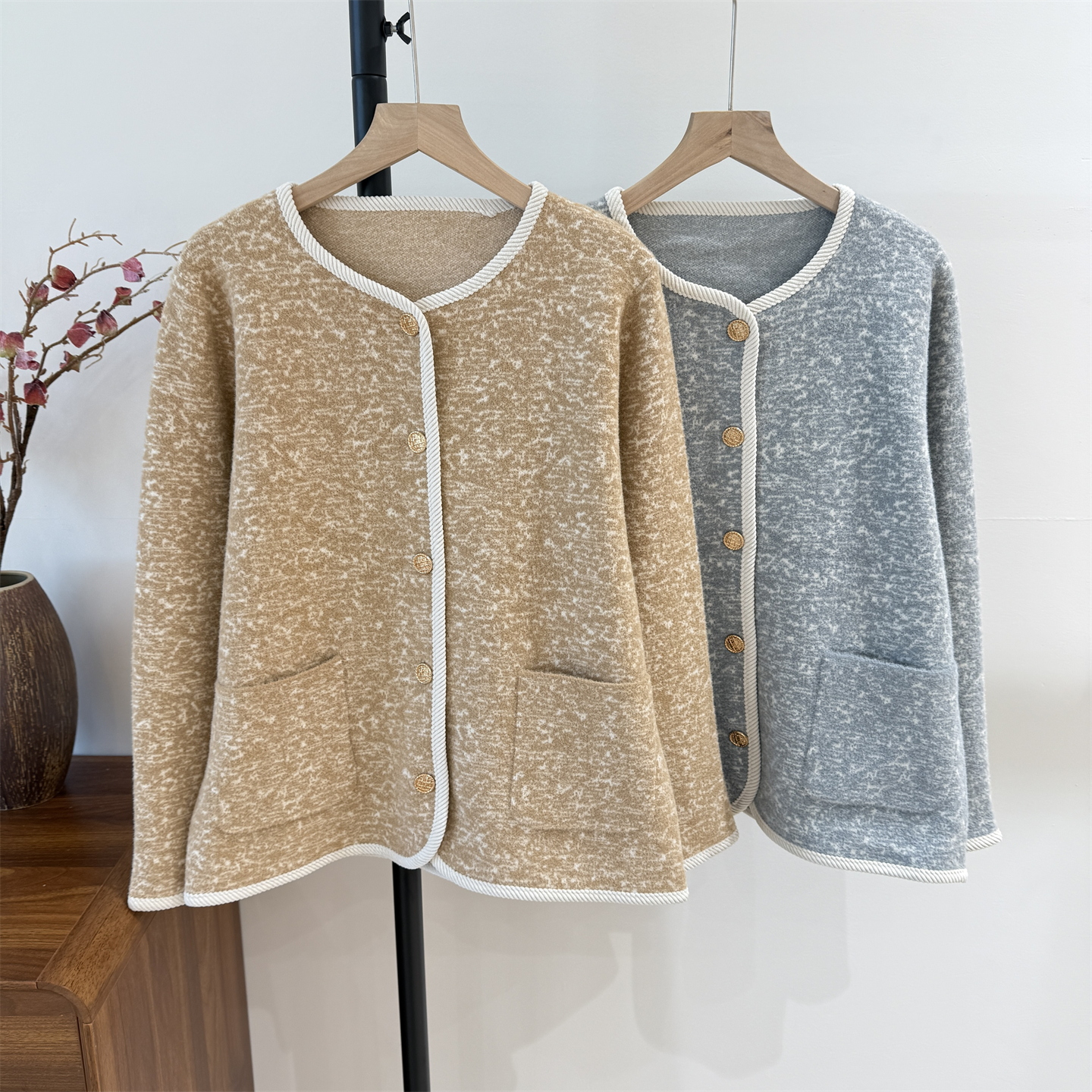 中老年妈妈秋装2025短款外套中老年女洋气呢子开衫秋冬季毛衣套装
