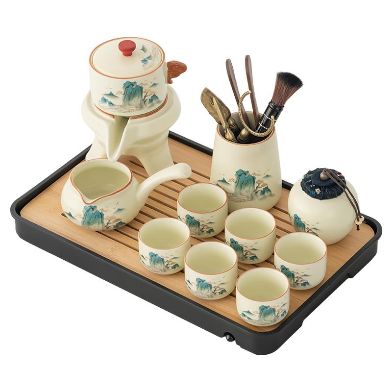 汝窑自动茶具套装家用高档懒人泡茶轻奢陶瓷功夫茶壶茶杯茶盘茶道