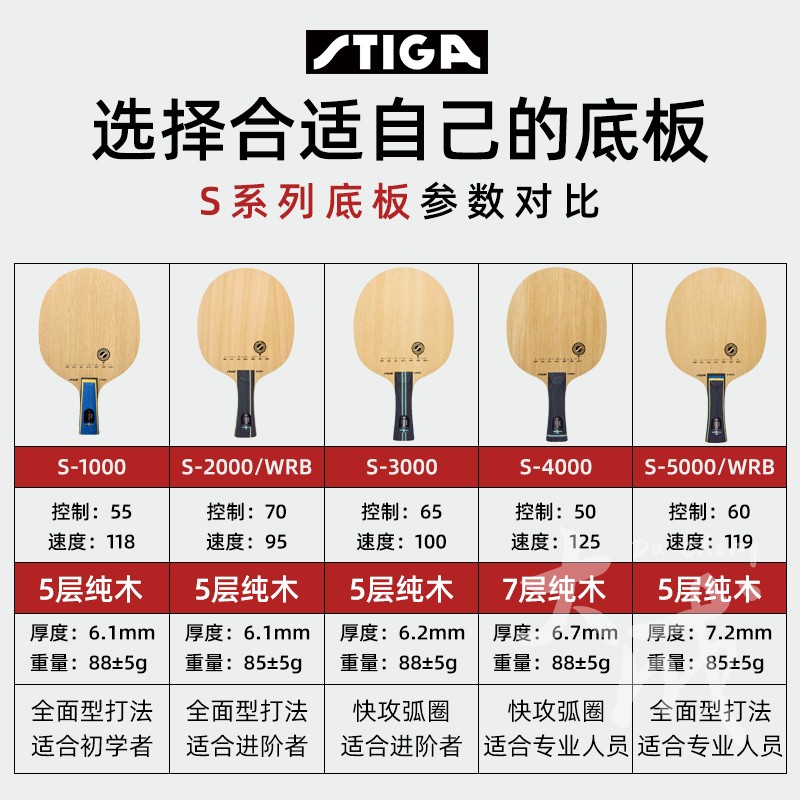 正品斯蒂卡乒乓球底板STIGA斯帝卡7层纯木S-5000WRB控制型球拍