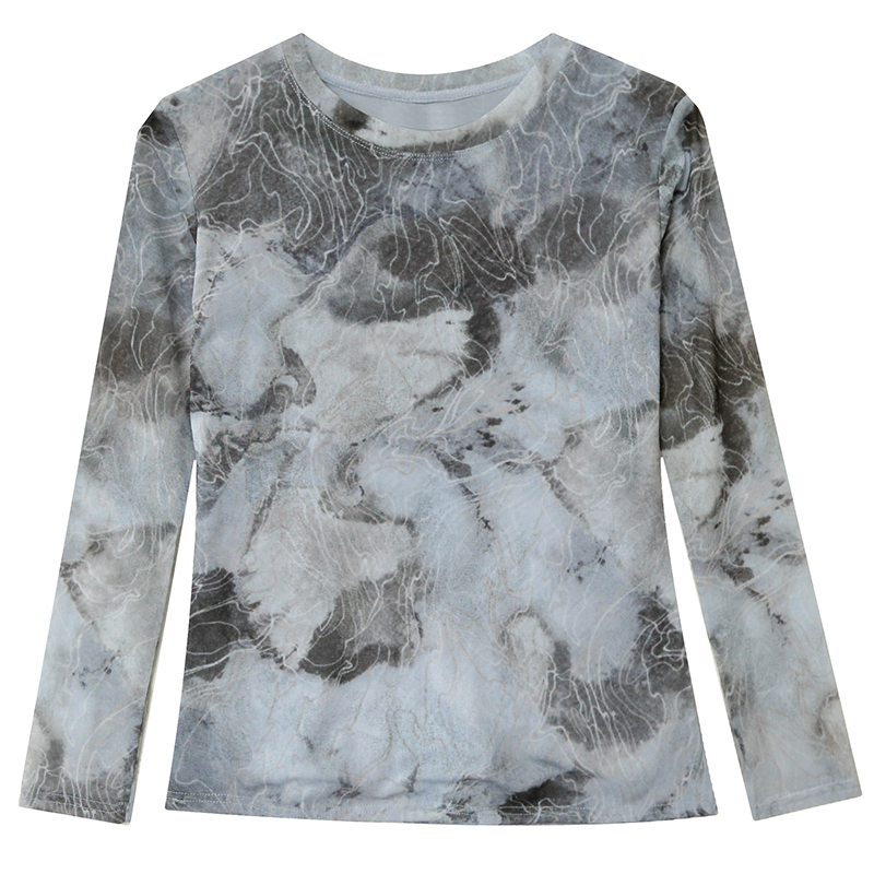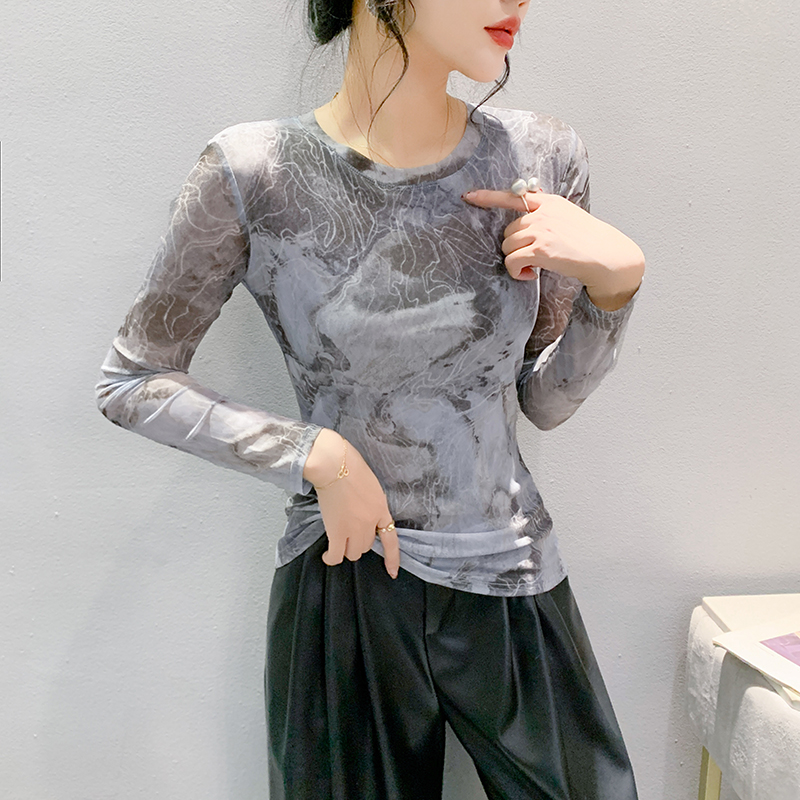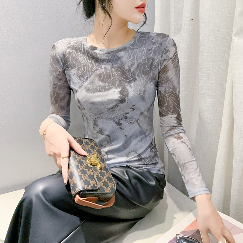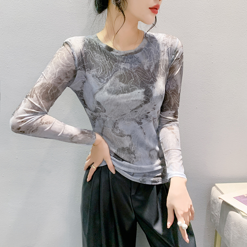 欧货扎染网纱打底衫长袖洋气上衣