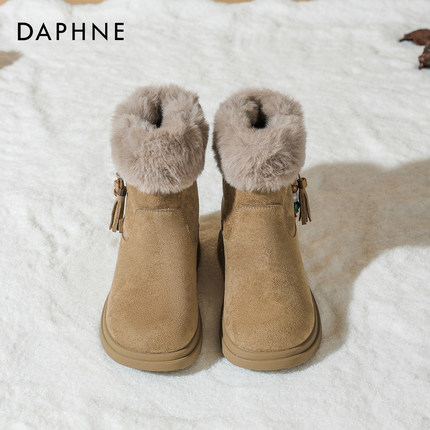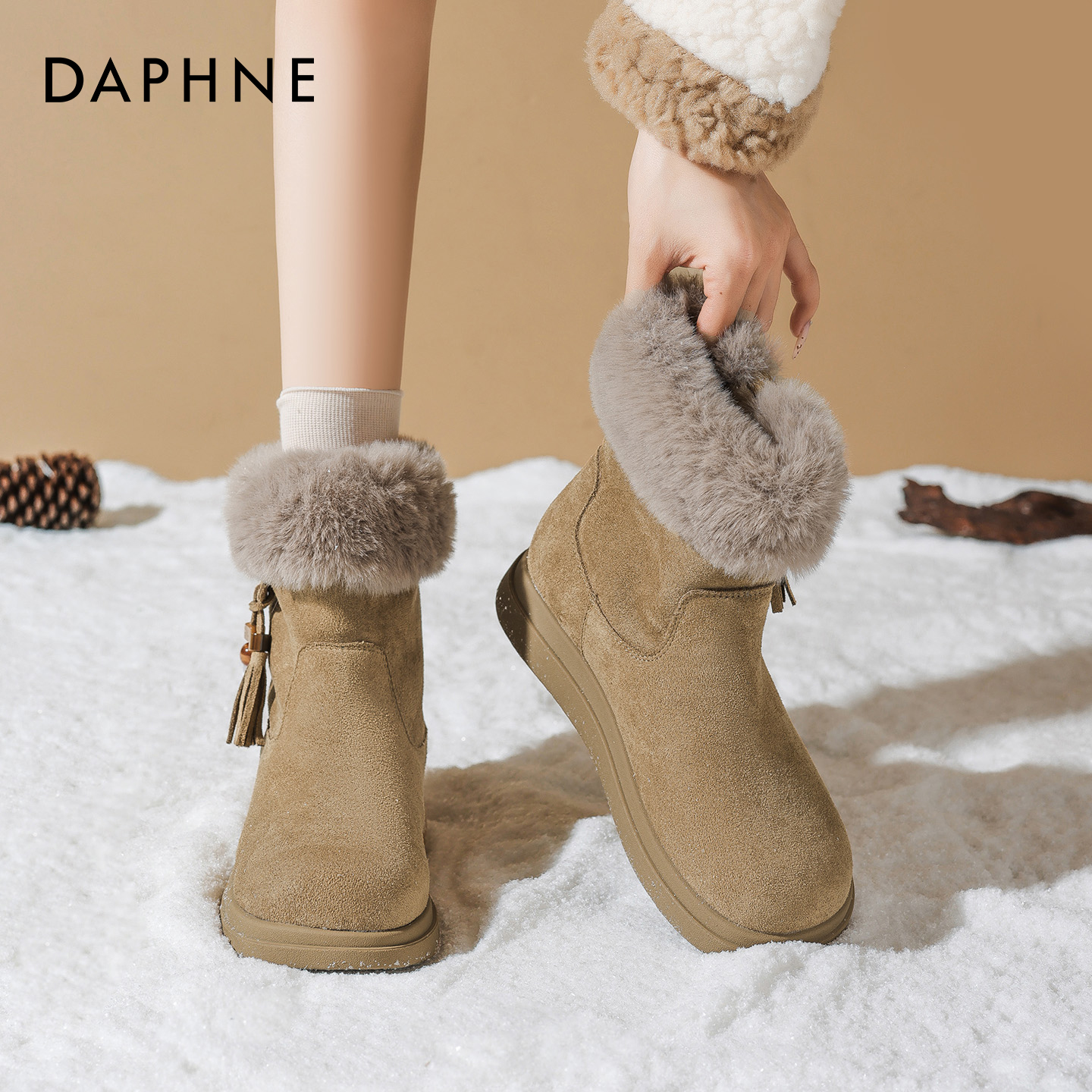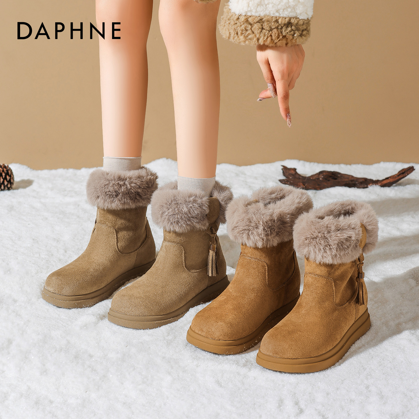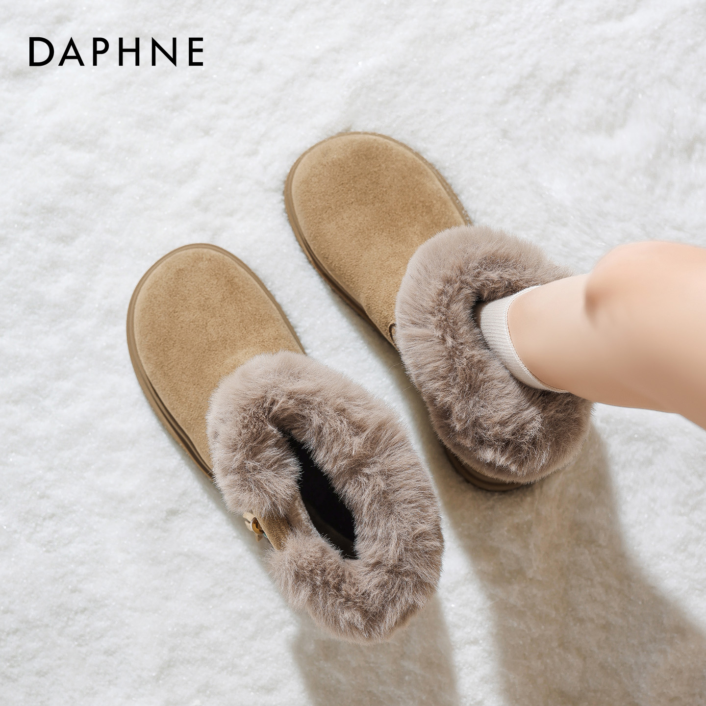 达芙妮加绒雪地靴女款2025新款冬季防寒保暖短靴厚底面包毛毛棉鞋