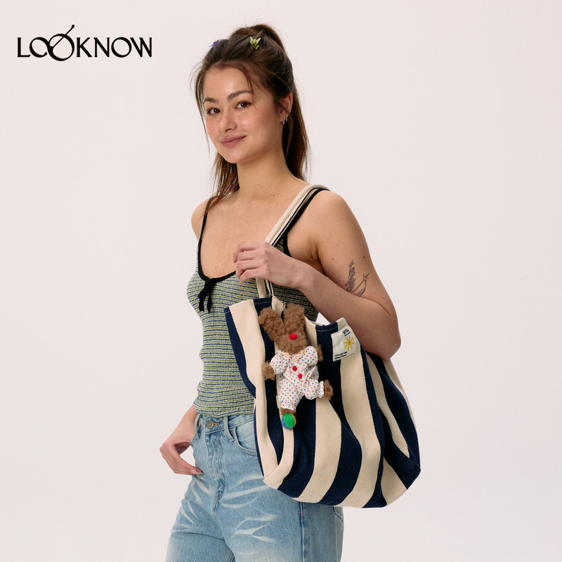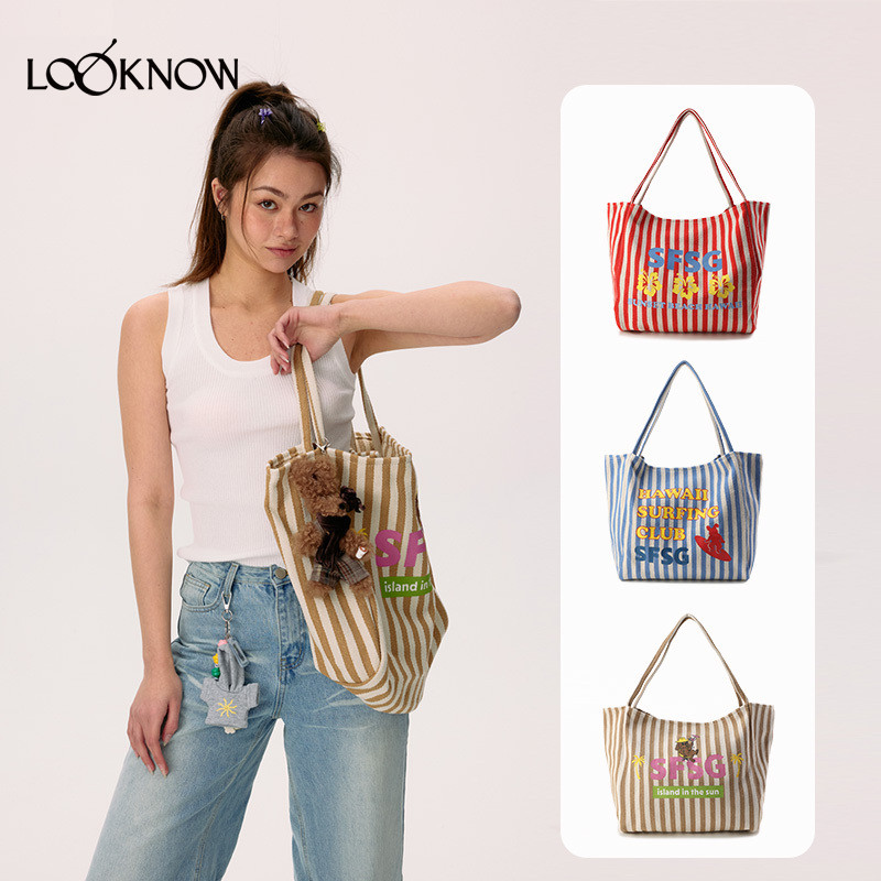 明星同款 SFSGLOOKNOW经典复古大容量水洗条纹帆布袋