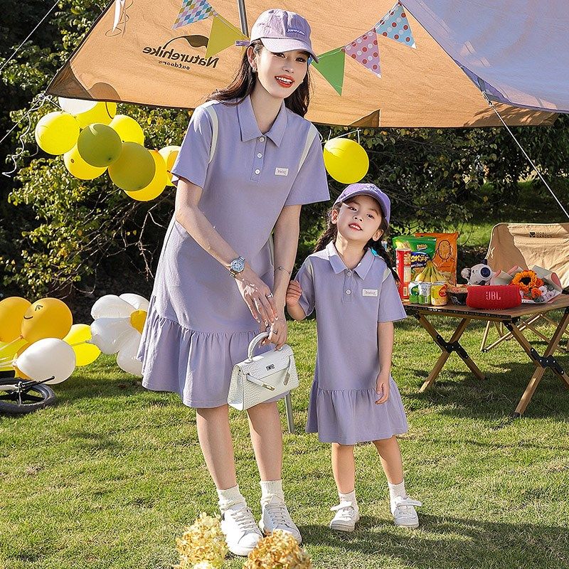 亲子装夏装2024新款家庭装潮一家三口四口全家套装母女连衣裙夏季