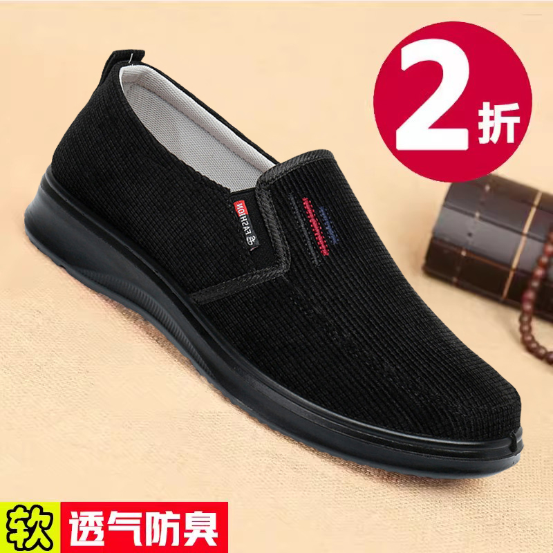老北京布鞋男帆布鞋春秋季中老年人软底休闲一脚蹬透气单鞋爸爸鞋