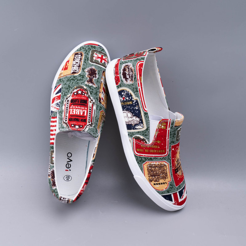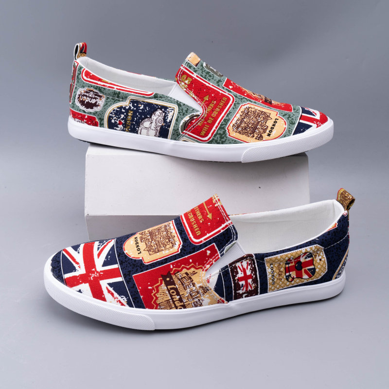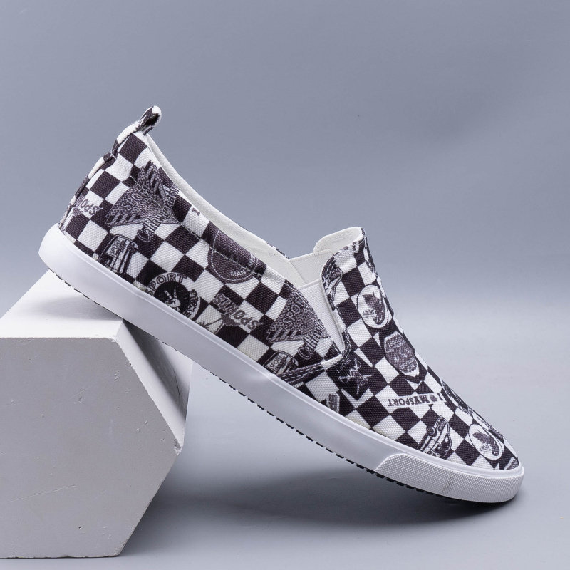 时尚格子帆布鞋男夏季透气印花休闲鞋欧美风潮男鞋一脚蹬百搭板鞋