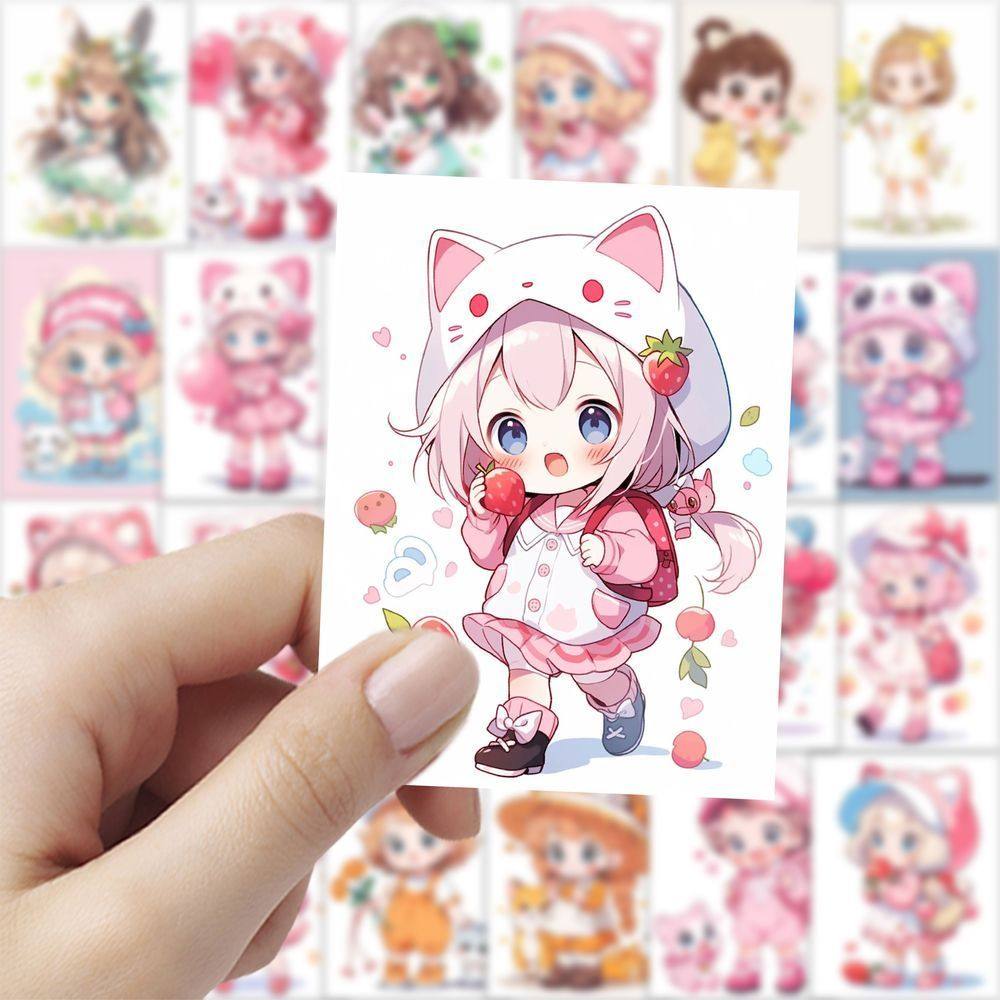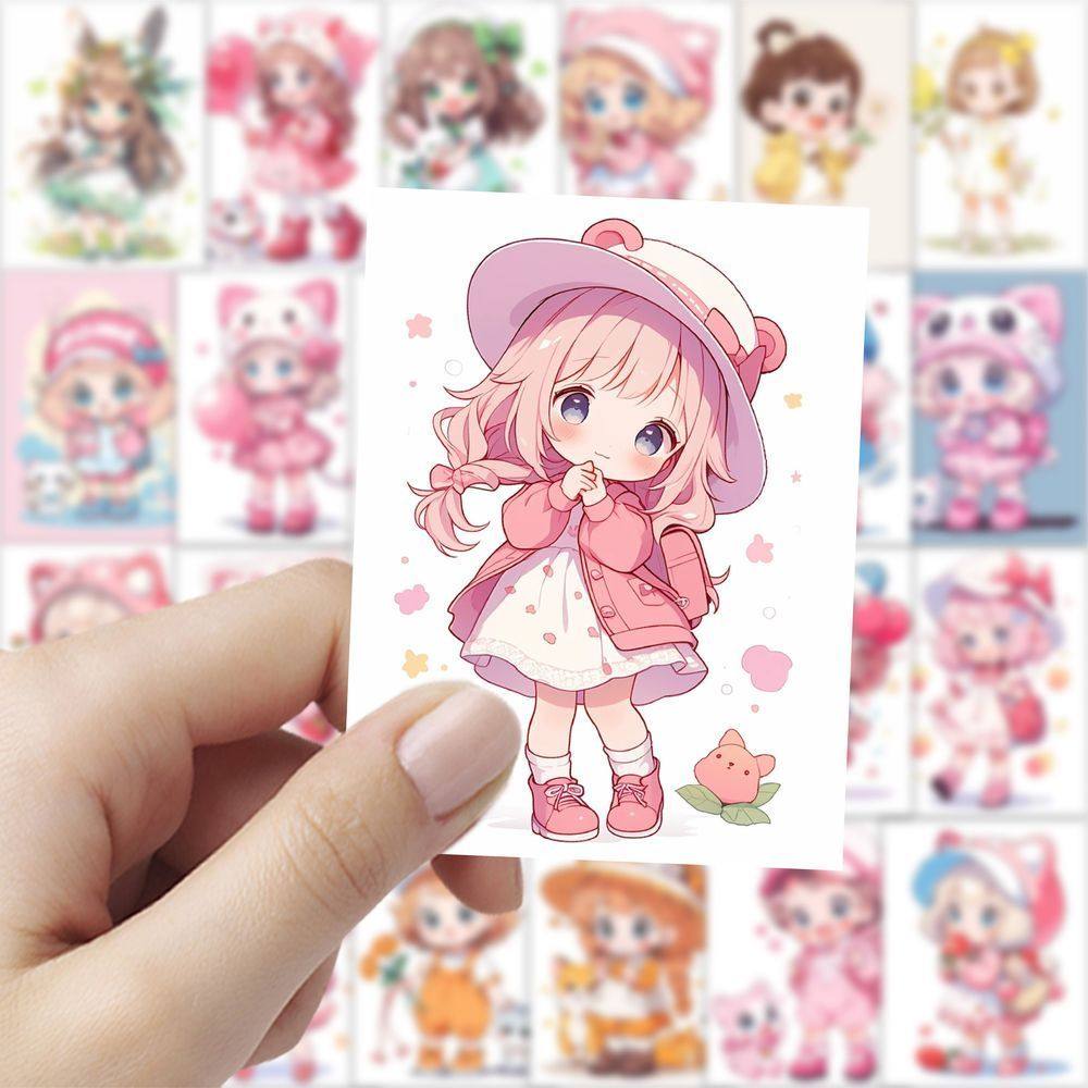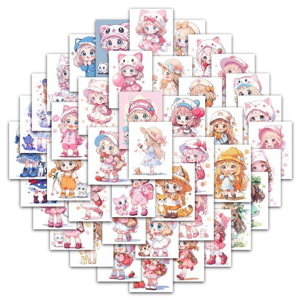 252张Q版可爱卡通萝莉少女贴画笔记本手账水杯DIY动漫贴纸装饰