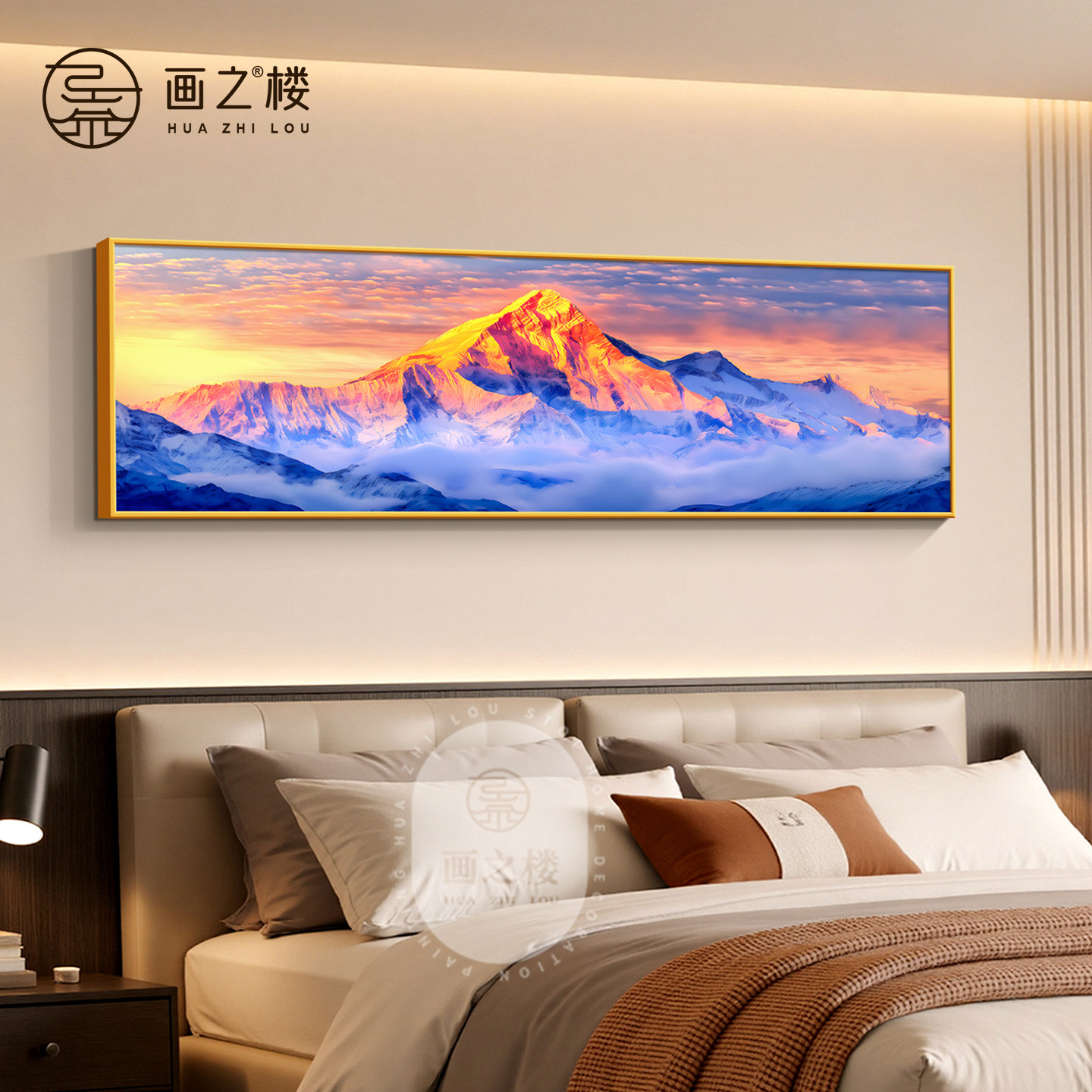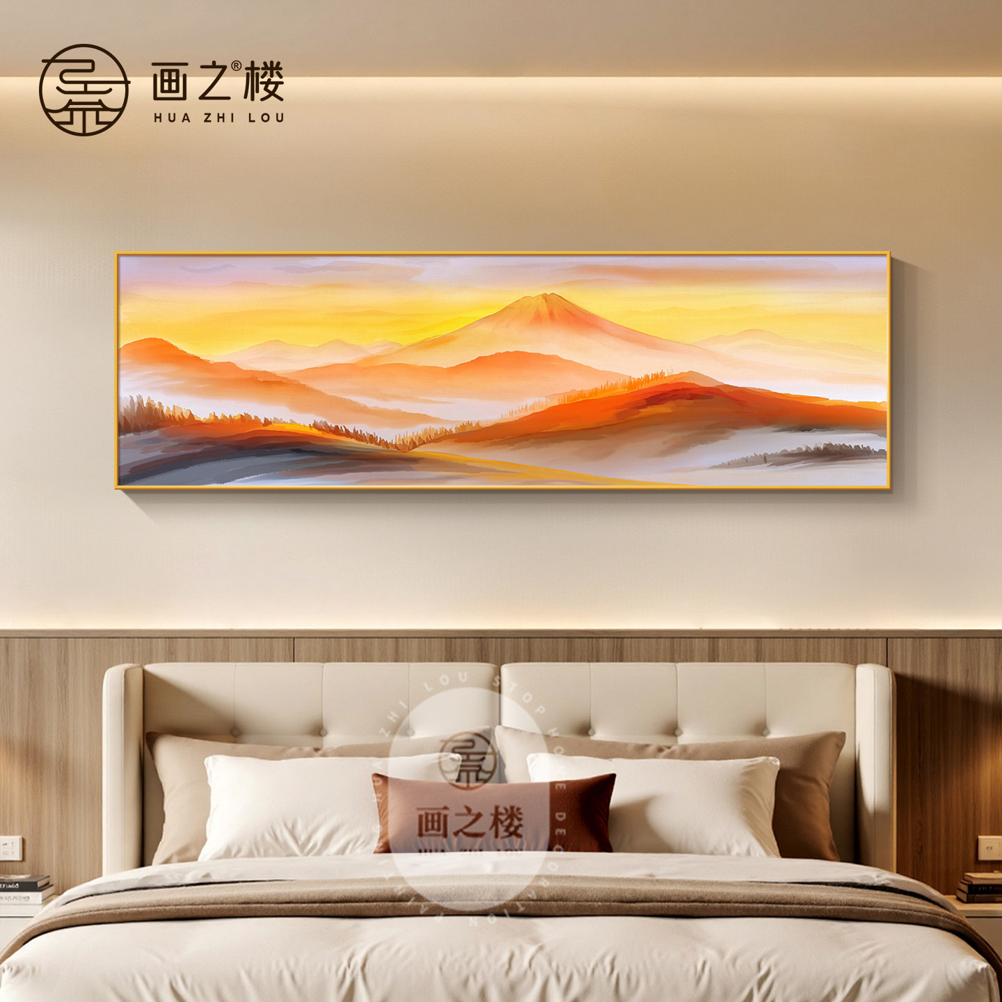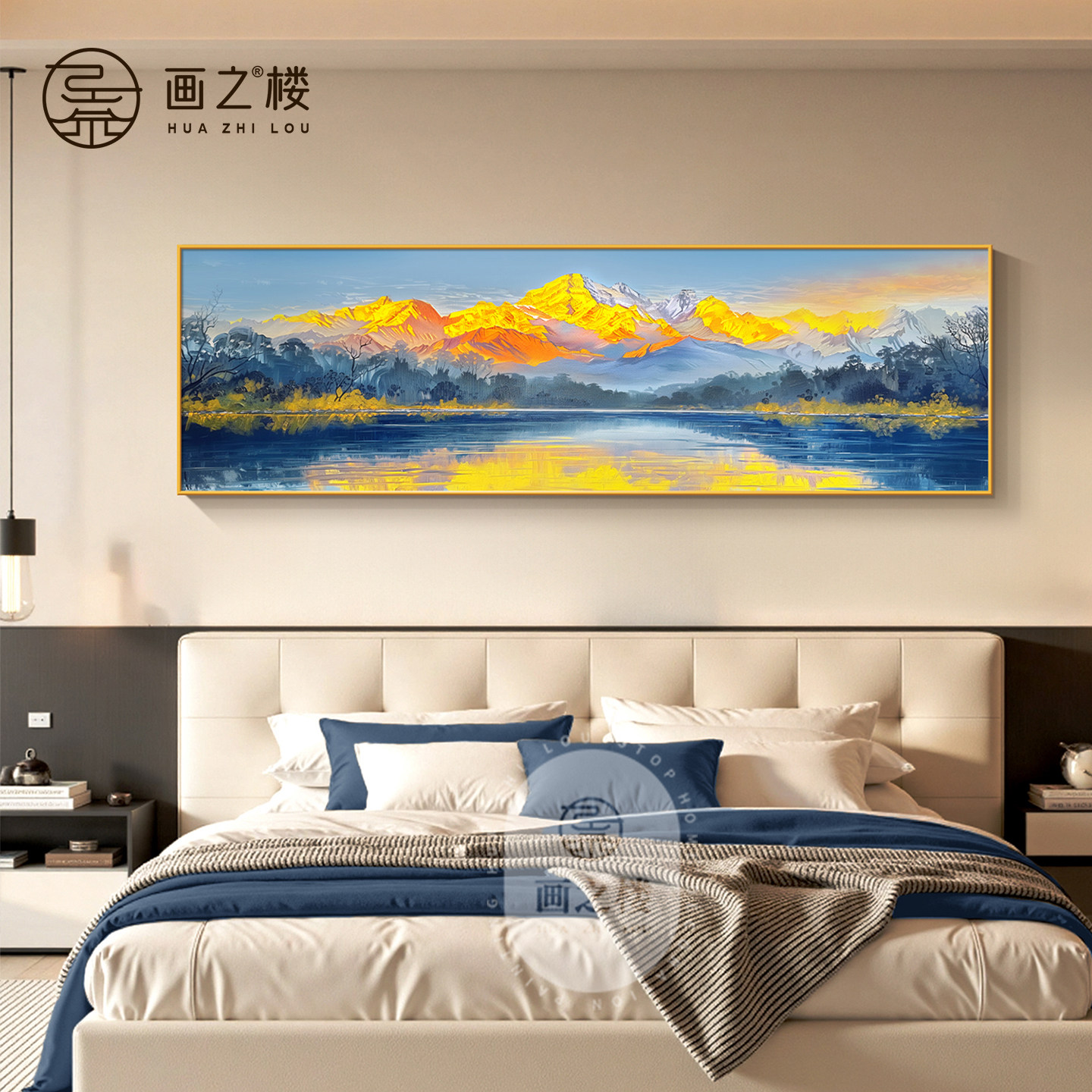 背靠金山卧室背景墙装饰画2025新款旺运大气主卧床头挂画客厅壁画