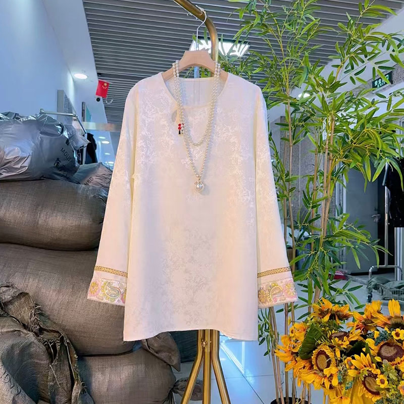 大码女装2025春季新款国风气质提花马甲打底衫遮肉显瘦唐装两件套