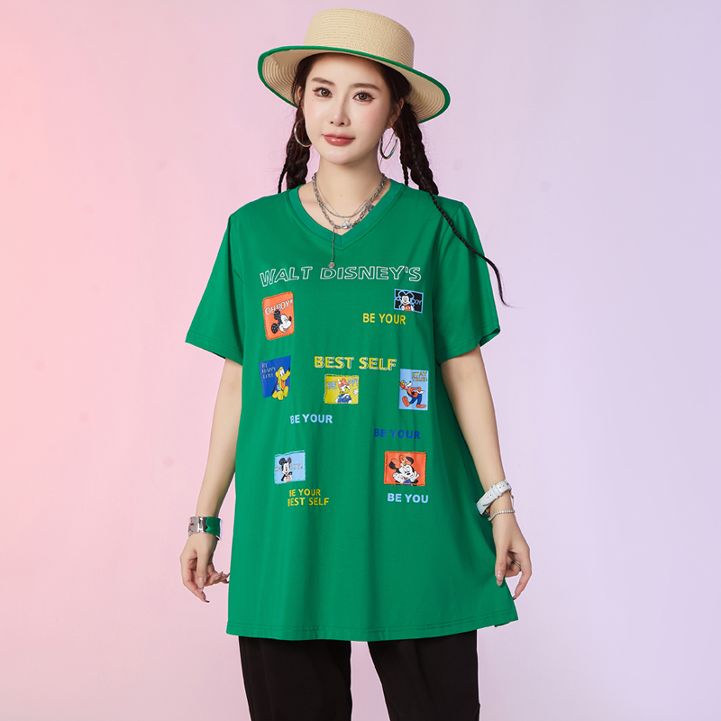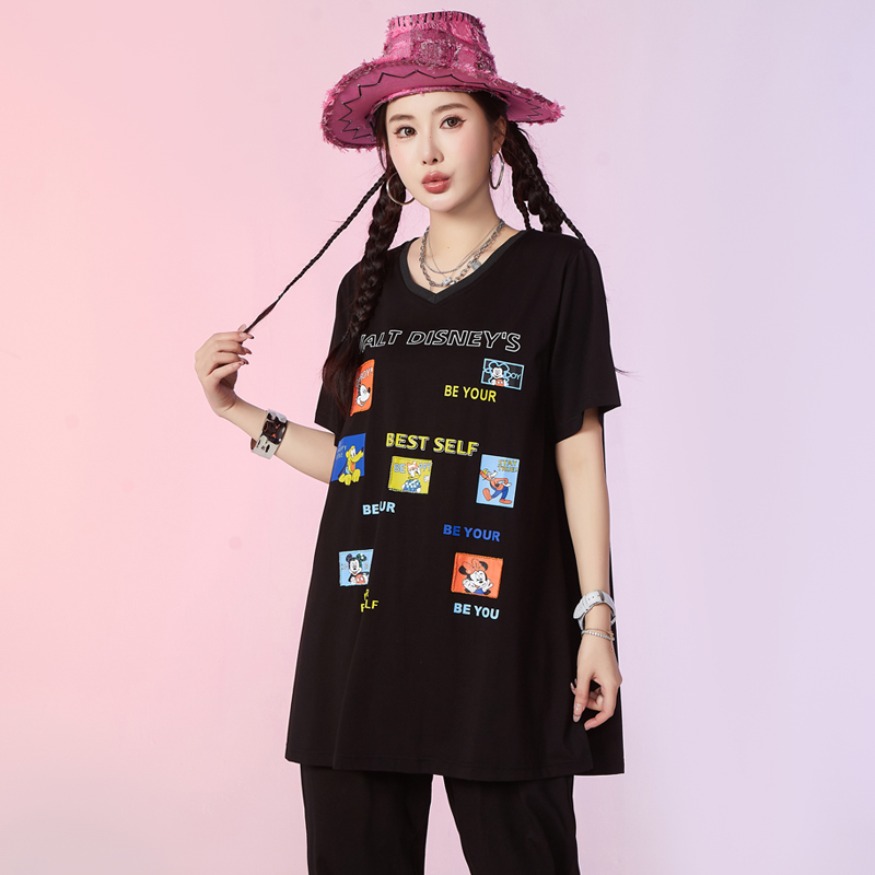 特大码女装200斤胖妹妹洋气卡通减龄上衣胖mm遮肚子显瘦短袖T恤衫