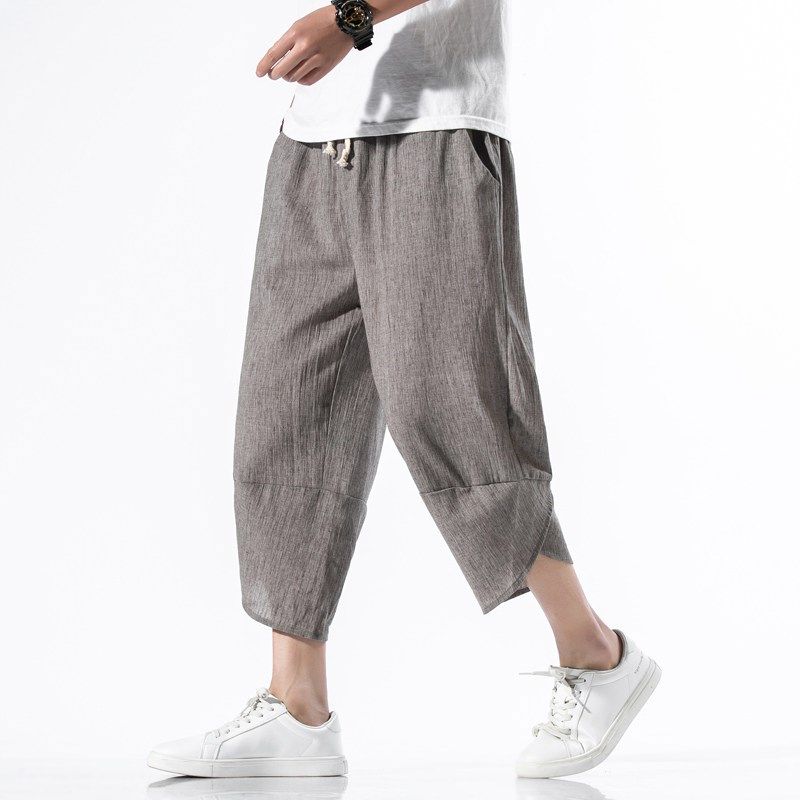 七分裤男士短裤夏季薄款冰丝亚麻裤子男款宽松大码棉麻休闲7分裤