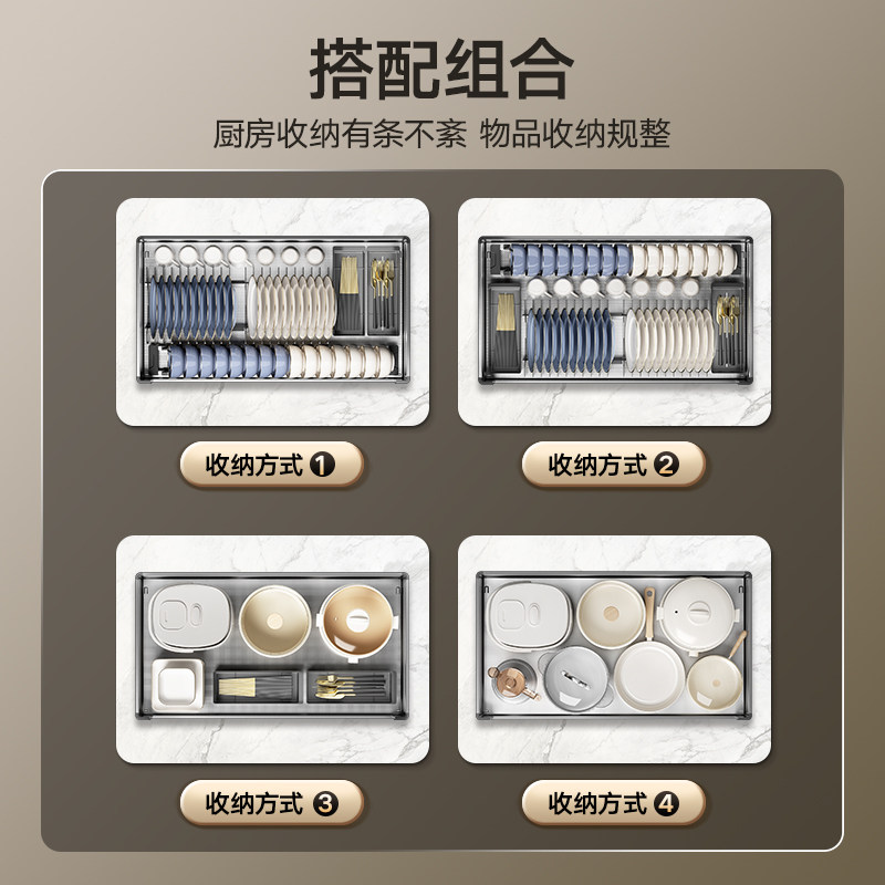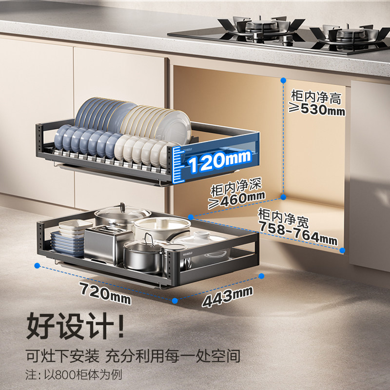 悍高厨房拉篮双层抽屉式搭配碗架