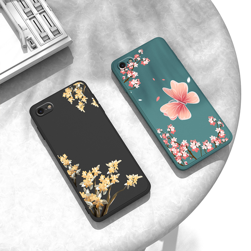 蝴蝶花适用iphone6splus手机壳8plus苹果6s套6plus防摔7p新款七iphone8液态iphonese3女款六6sp外壳8八se2