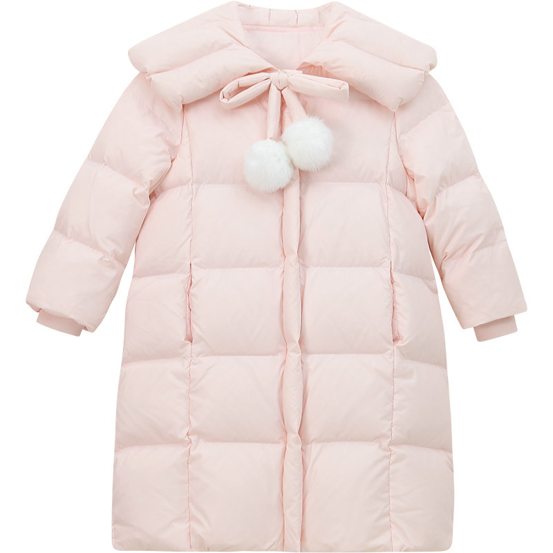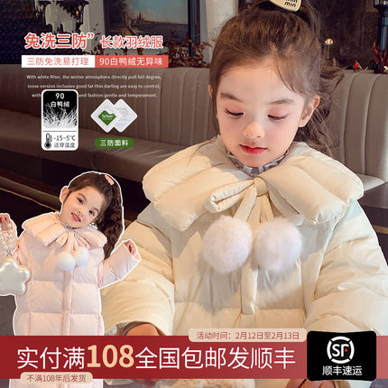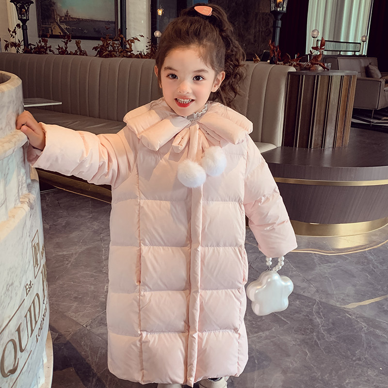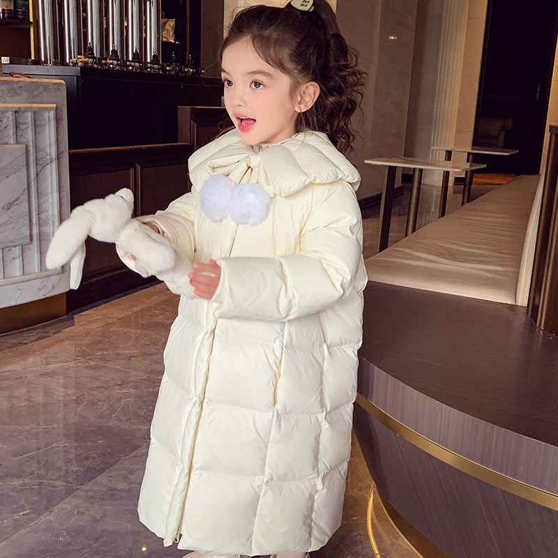 女童中长款羽绒服白鸭绒面包服冬装2025新款洋气儿童加厚保暖外套
