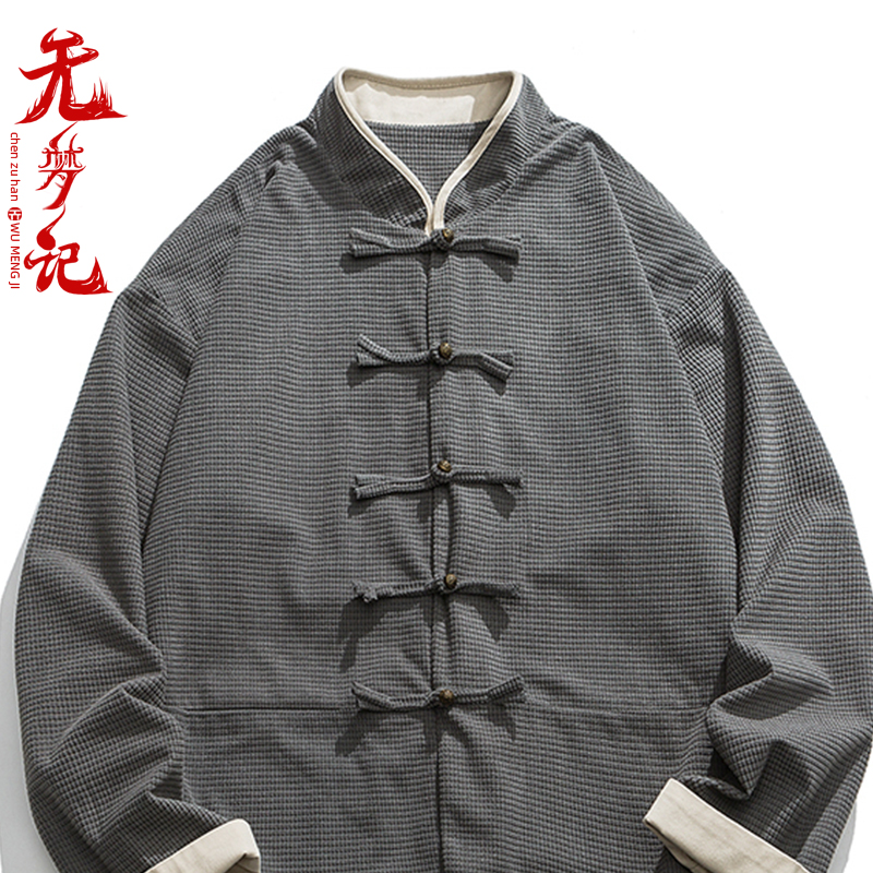无梦记中国风男秋季中式唐装个性盘扣立领灯芯绒情侣夹克外套上衣