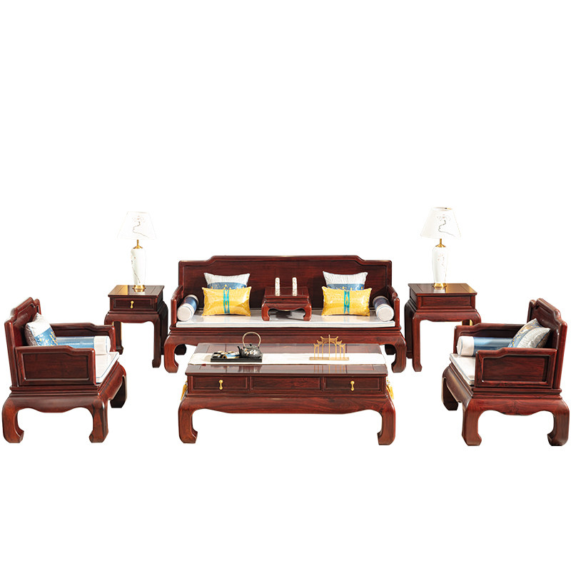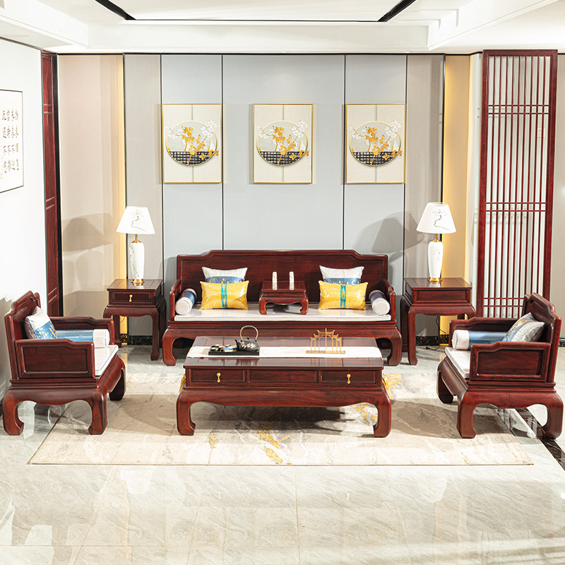 国标红木沙发红酸枝绒毛黄檀家具新古典客沙发中式明清素面沙发