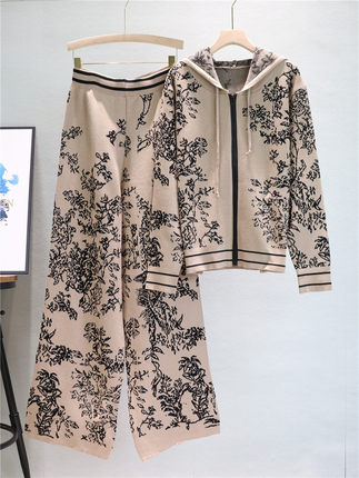 欧洲站小香风时尚针织套装女2025春秋连帽毛衣减龄阔腿裤两件套潮
