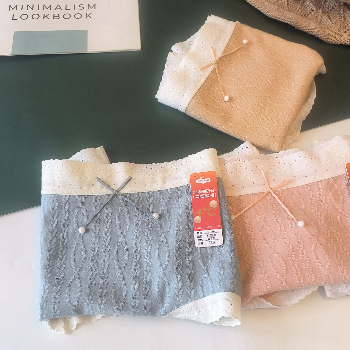 彩田秋冬新品15379提花大码磨毛暖身石墨烯抑菌底裆蕾丝边内裤女