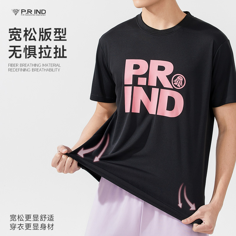 浦锐羽毛球服运动T恤2025年新款吸汗速干时尚潮大logo上衣短袖男