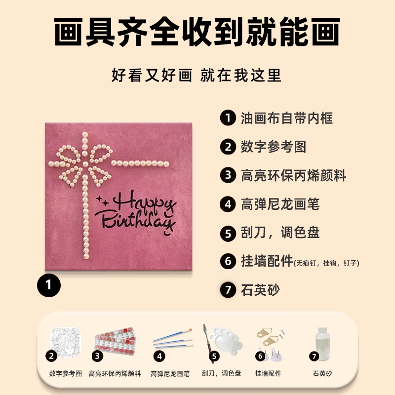 生日快乐礼物肌理画石英砂diy手工全套材料包丙烯数字油画装饰画