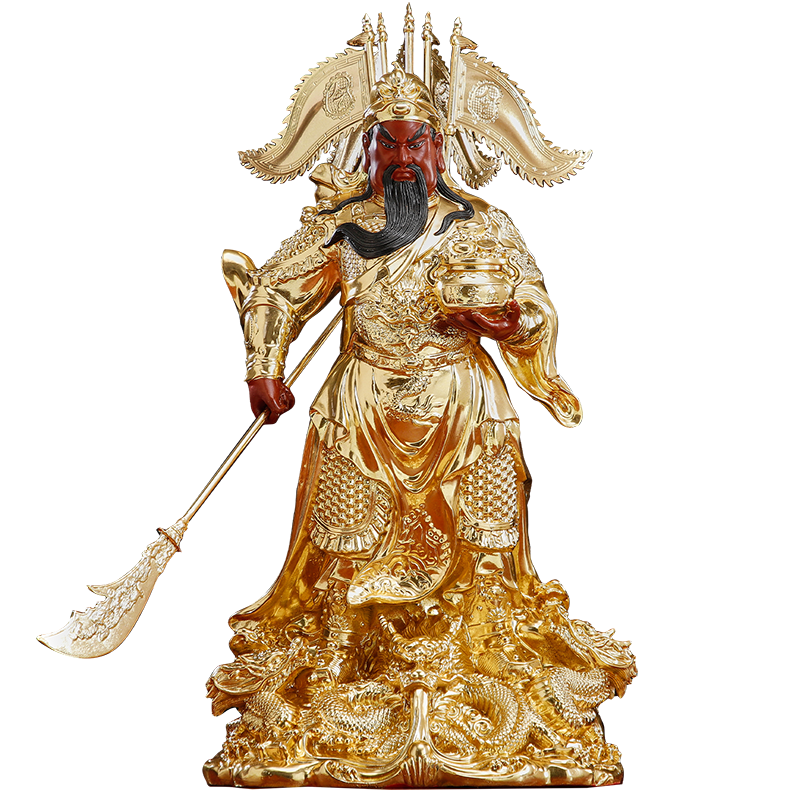纯铜九龙关公神像家用供奉摆件