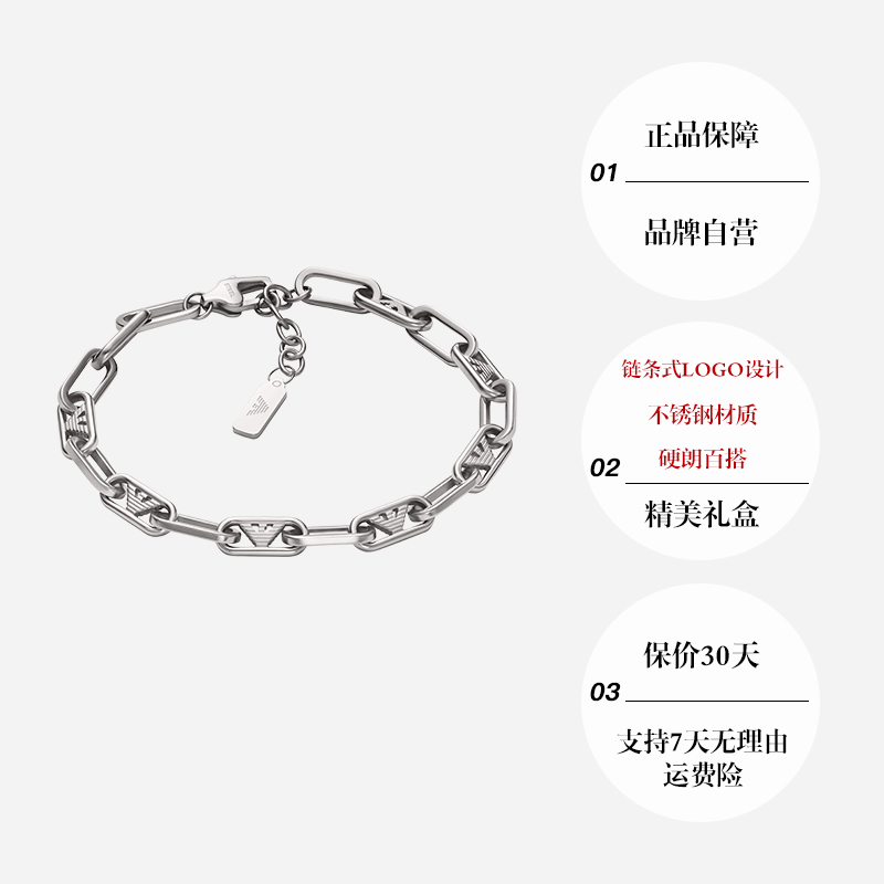 【自营】Armani阿玛尼经典logo系列古巴简约百搭手链送男生礼物