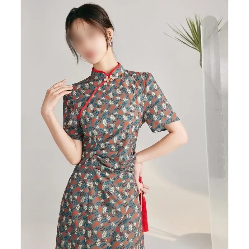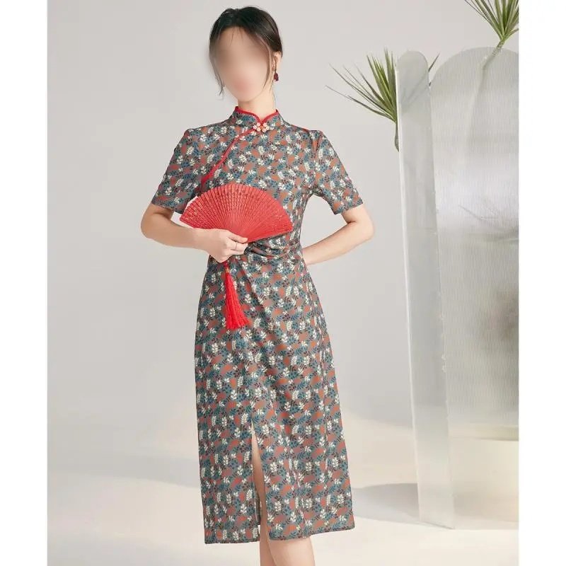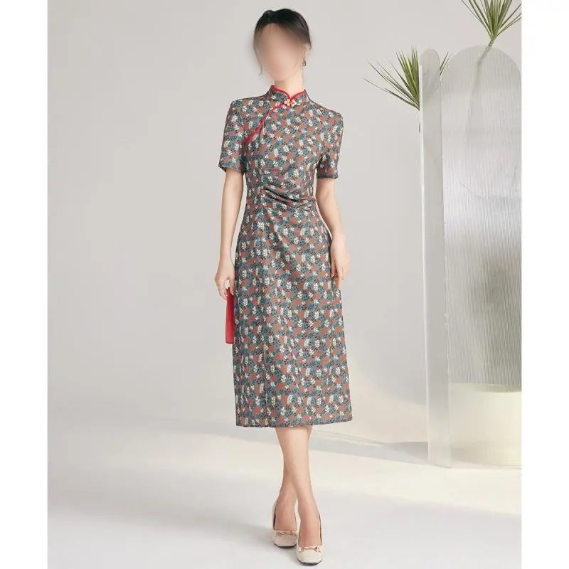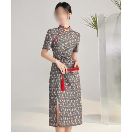 新中式大码300斤女装改良旗袍中长款复古裙子夏季国风微胖连衣裙