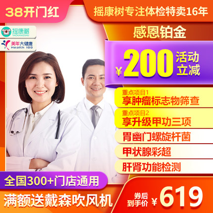 美年大健康感恩铂金体检套餐北京上海杭州等全国男女通用