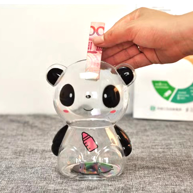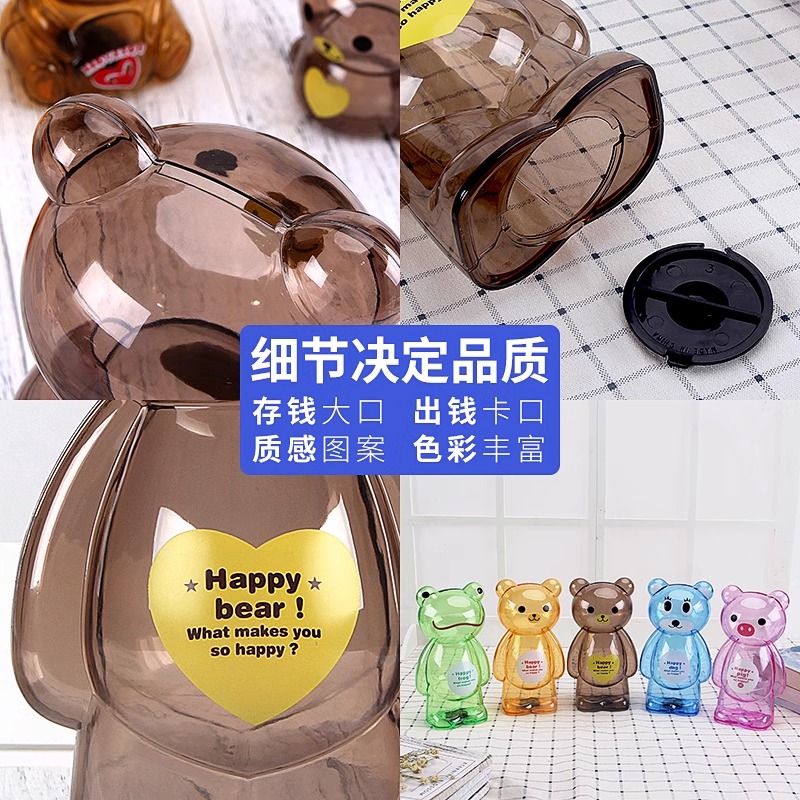 卡通动物生肖熊积分币奖励币纸币透明存钱罐可存可取六一生日礼物
