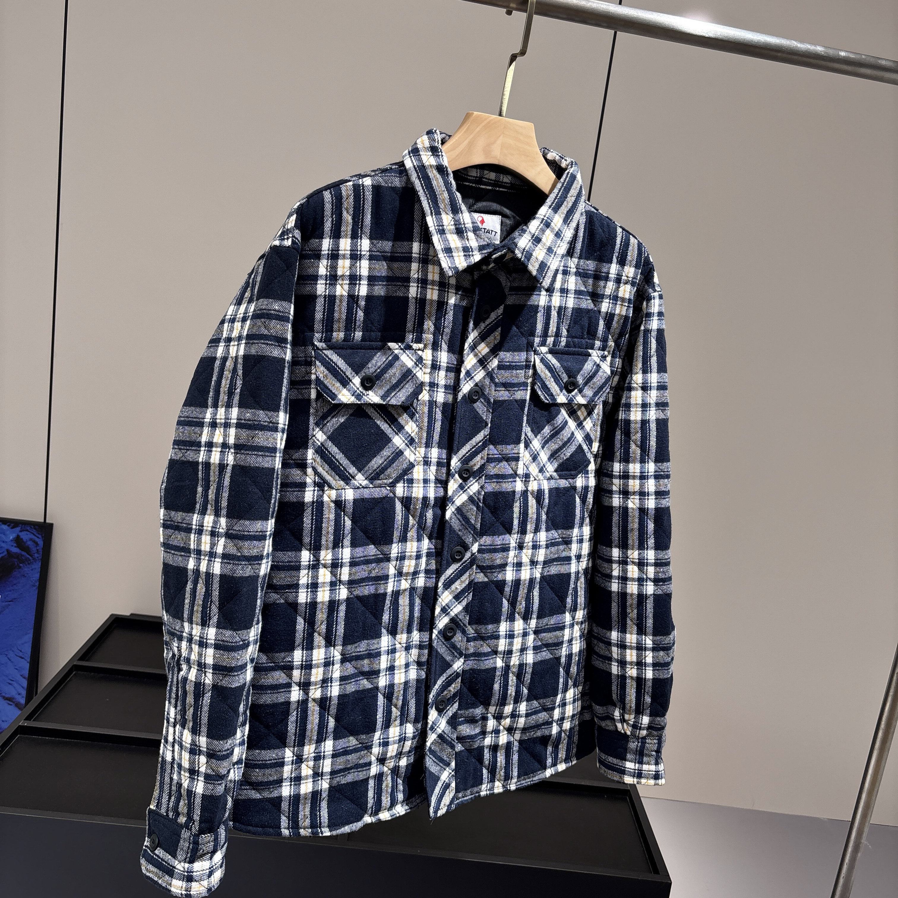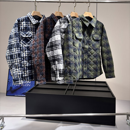北美小众单!菱形格绗缝!秋冬男士加厚保暖复古工装翻领棉衣衬衫