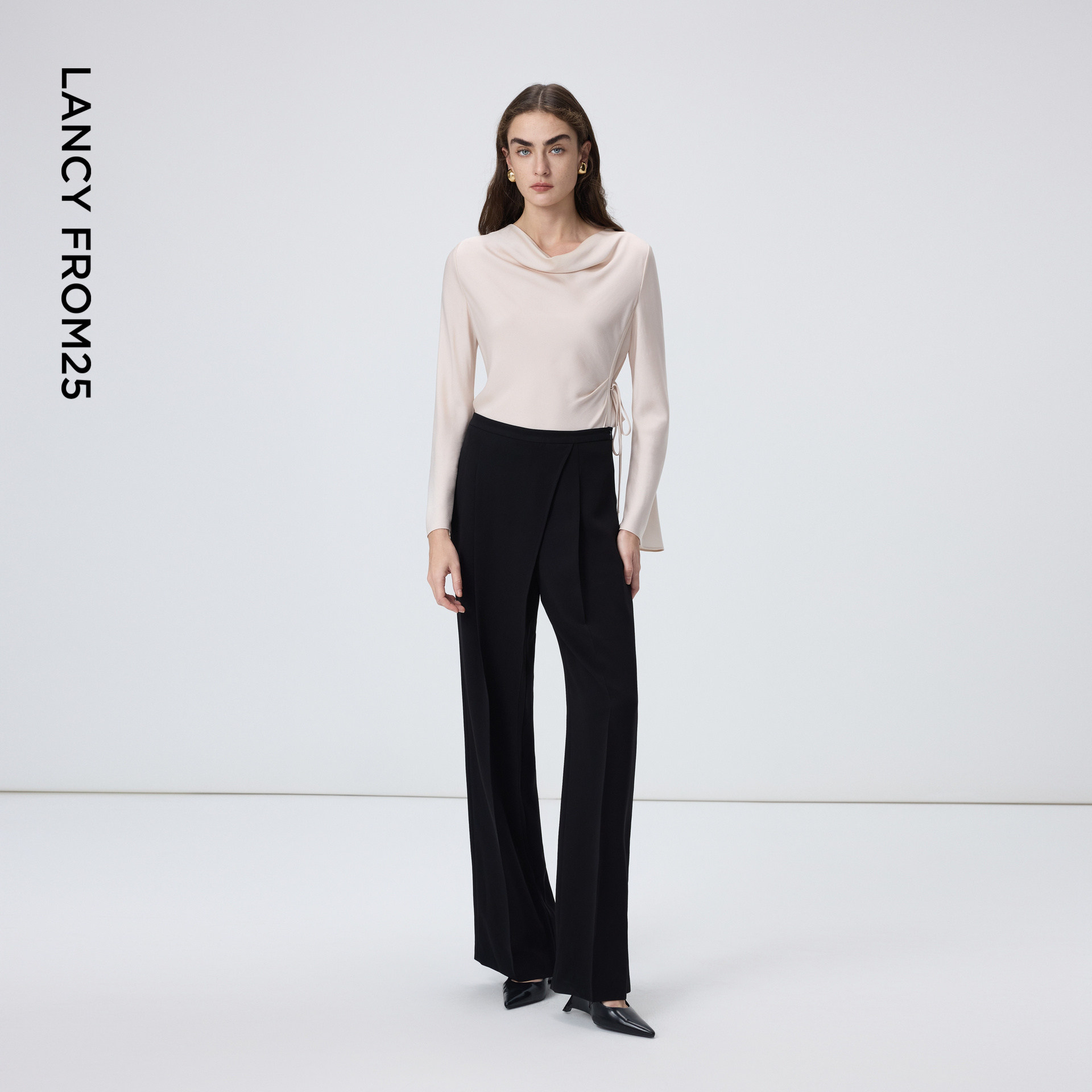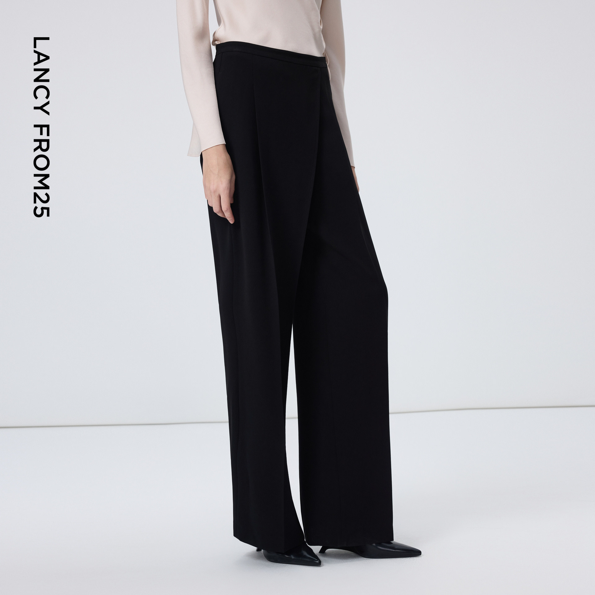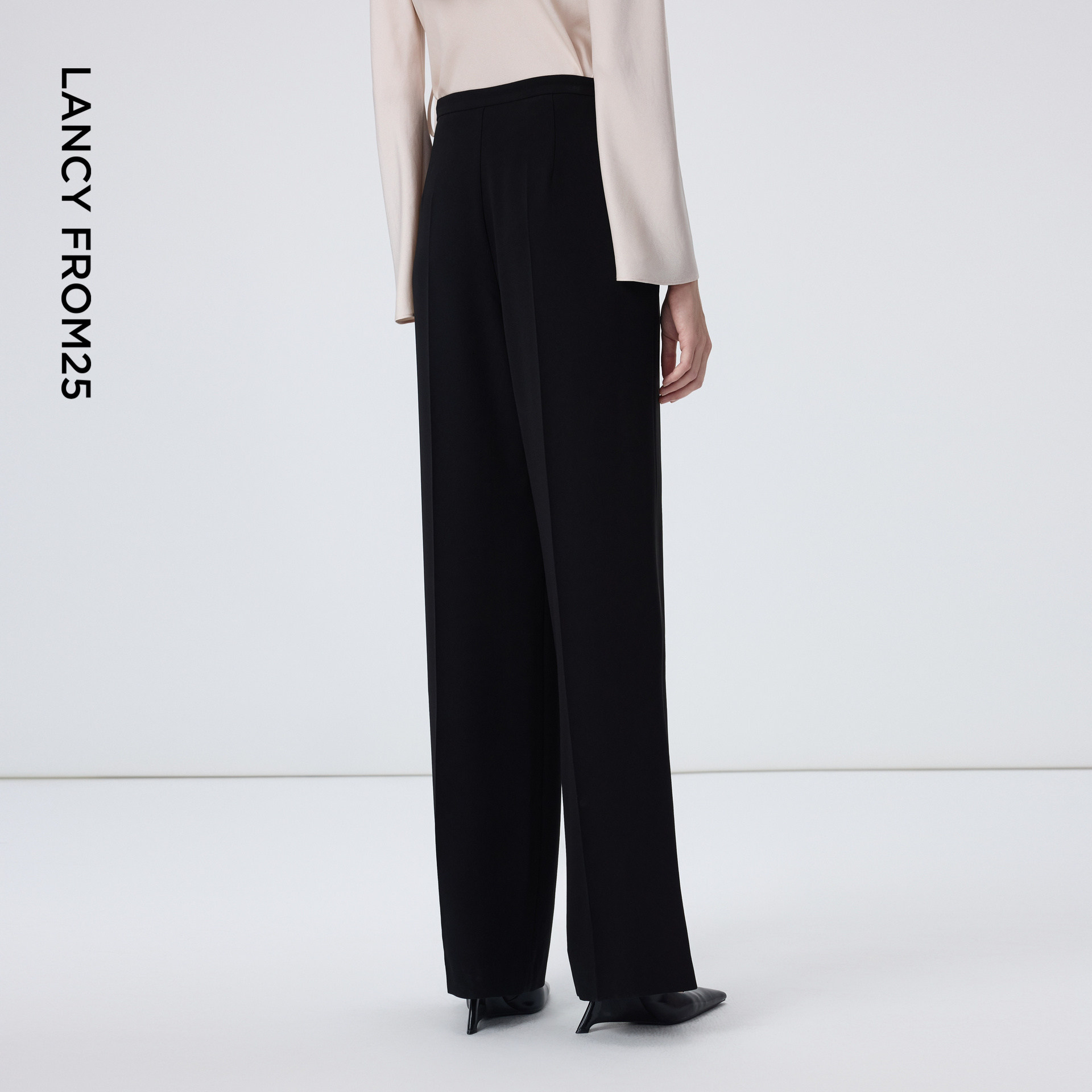 朗姿直筒裤子商务通勤裤子醋酸宽松黑色西装裤2026年春季新款女