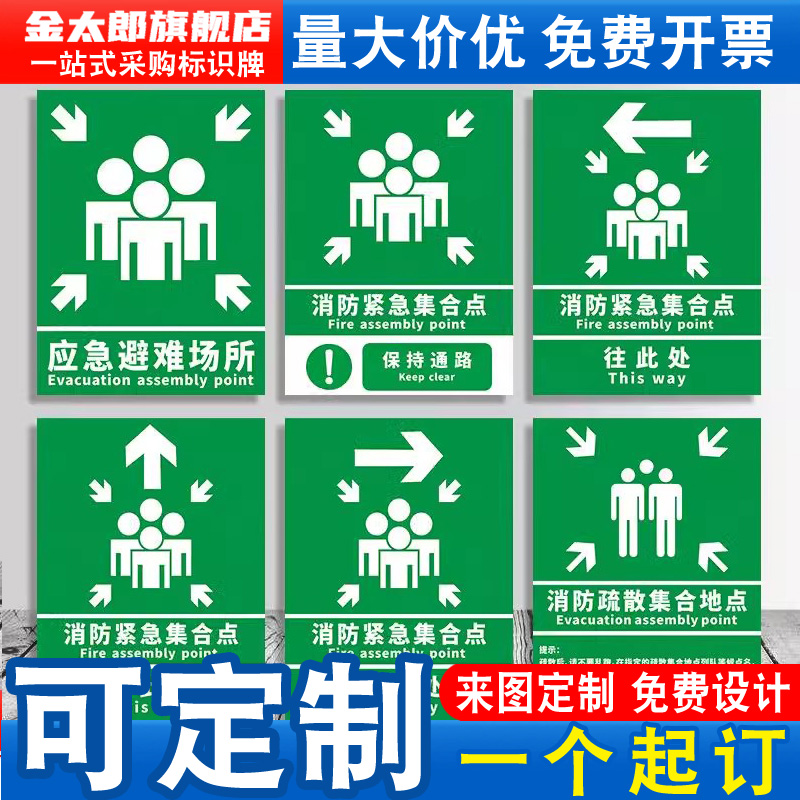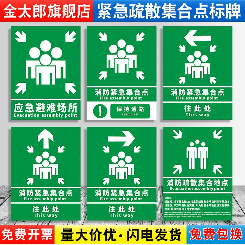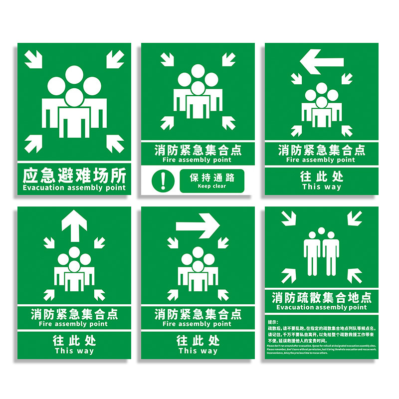 紧急疏散集合地点应急避难场所消防标识标示贴安检企业工厂单位消防器材提示指示牌安全警示标志牌定制做ZY