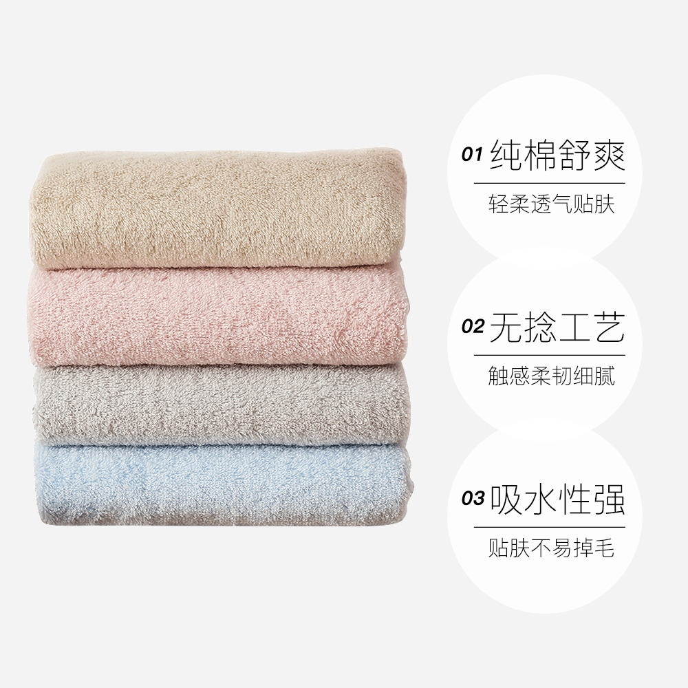【自营】内野毛巾面巾无捻纱浴巾儿童洗脸巾纯棉进口全棉条装吸水