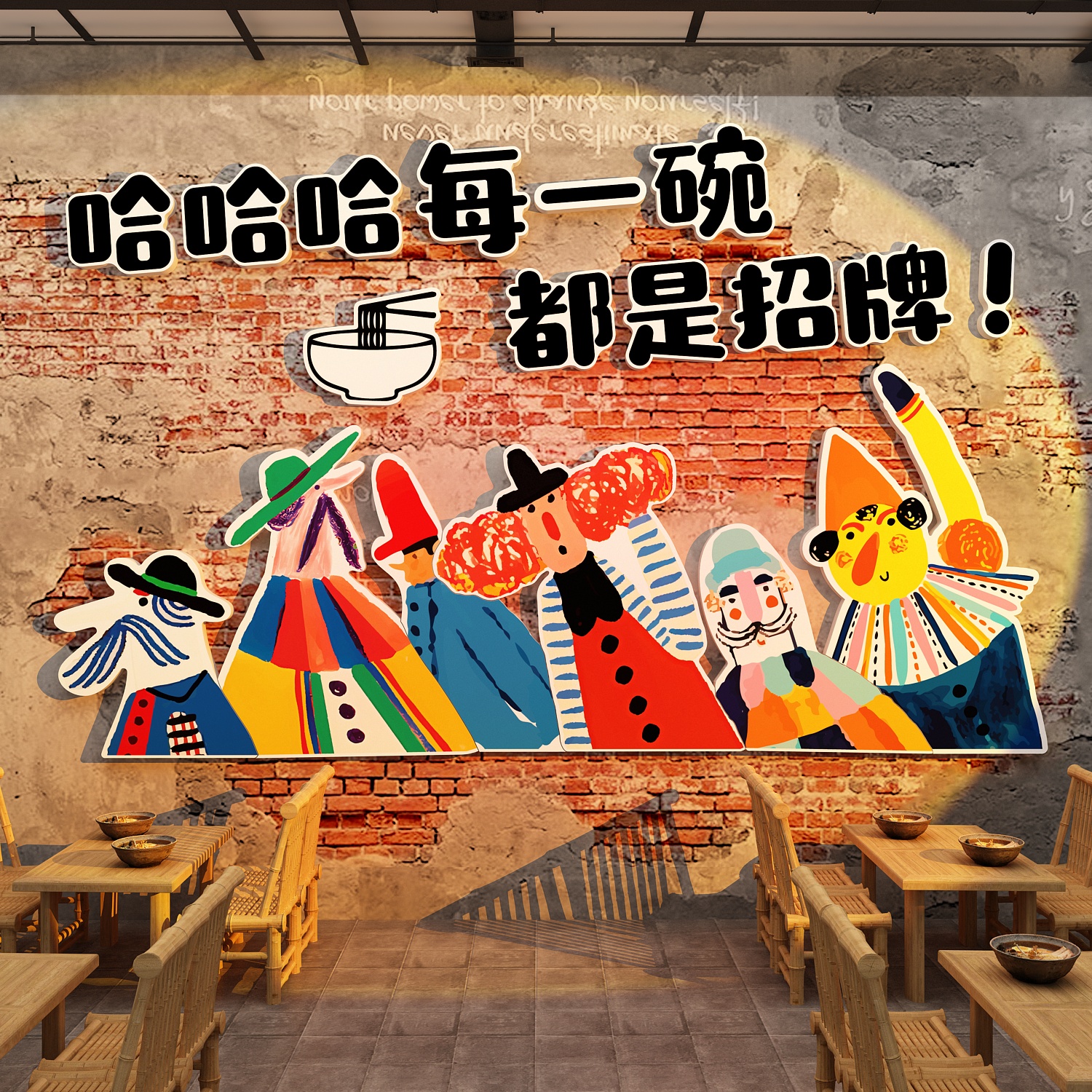 网红面馆墙贴纸画餐饮米线店装饰氛围布置创意挂早餐广告海报形象